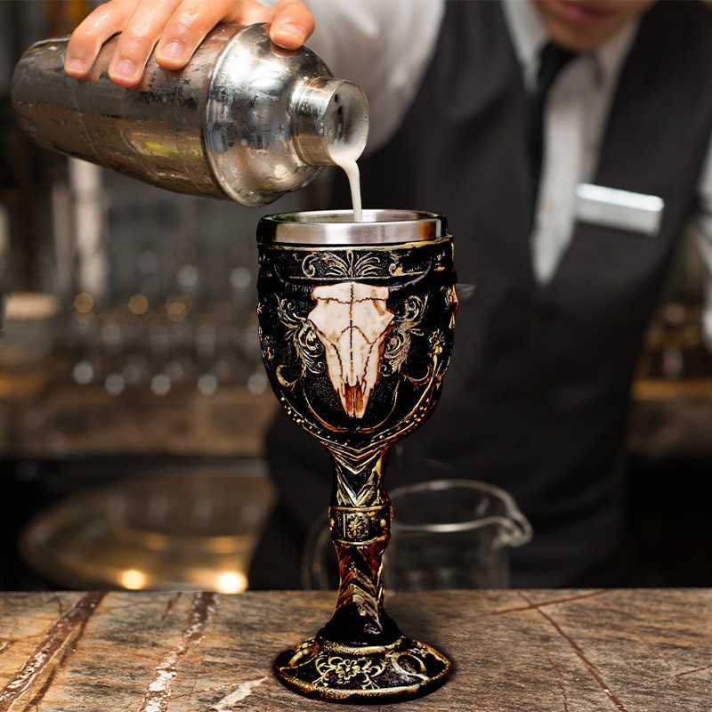 Epicki kielich wykonany z żywicy, z wkładką ze stali nierdzewnej i pięknymi zdobieniami.