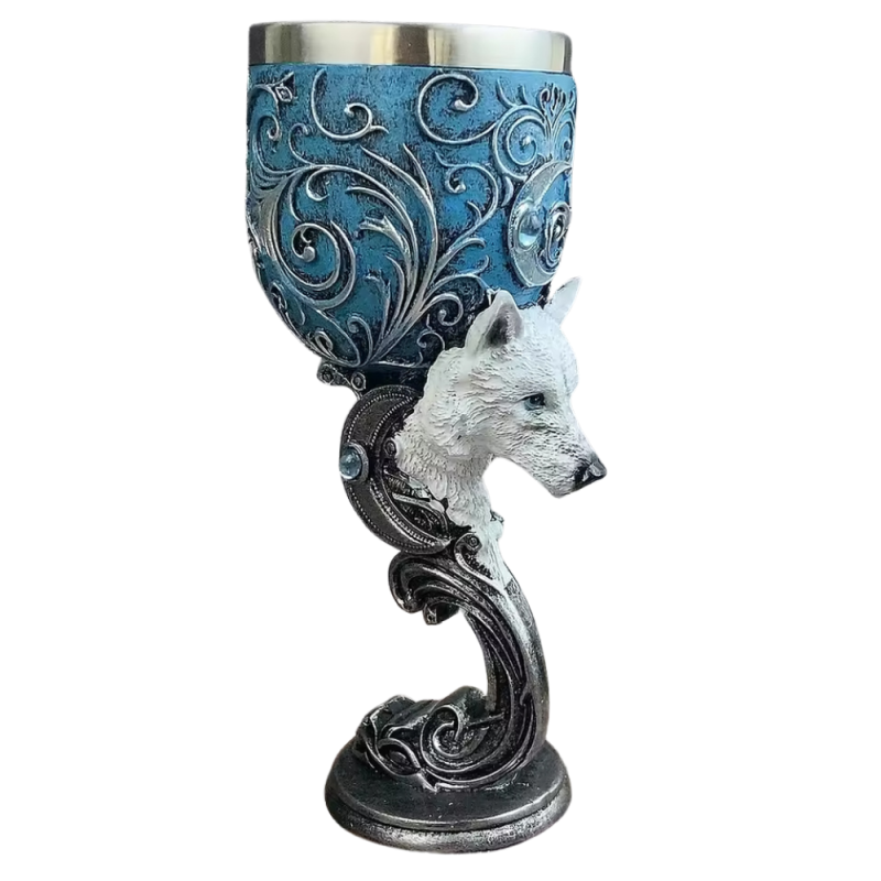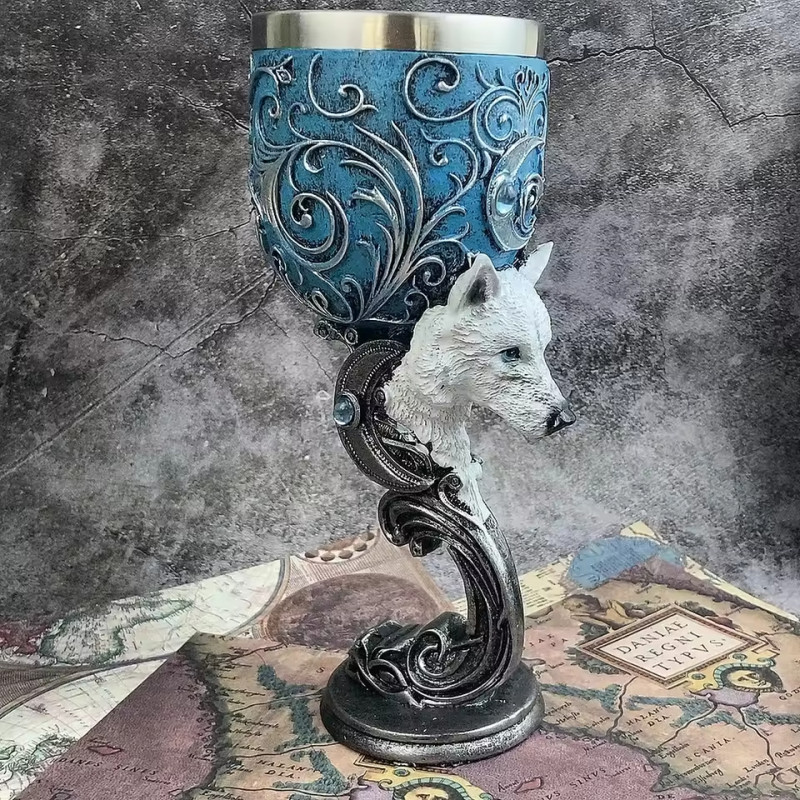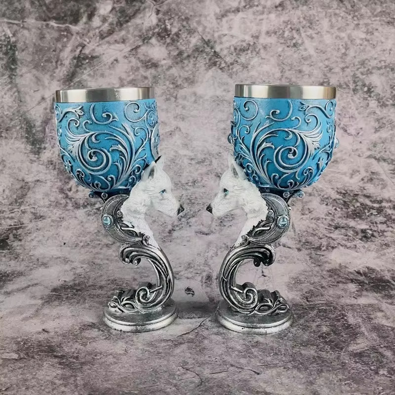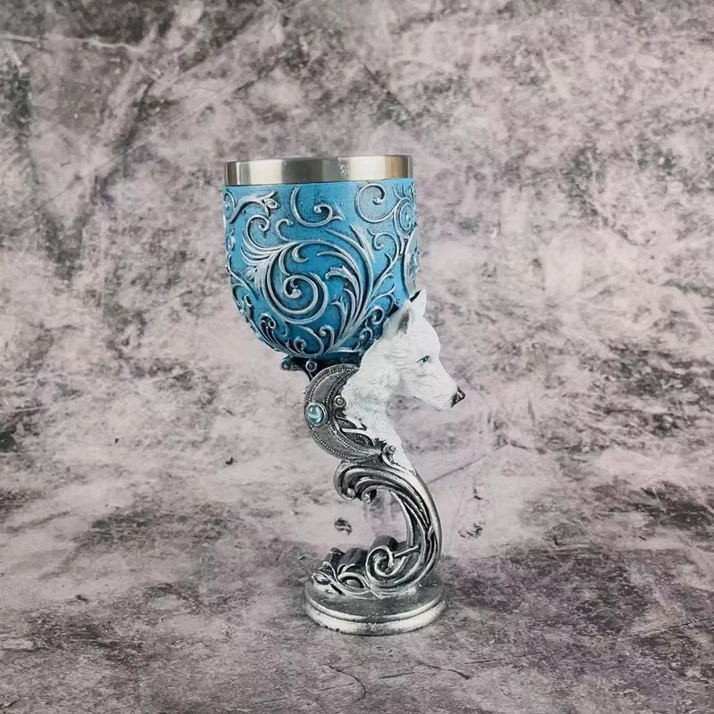 Epicki kielich wykonany z żywicy, z wkładką ze stali nierdzewnej i pięknymi zdobieniami.
