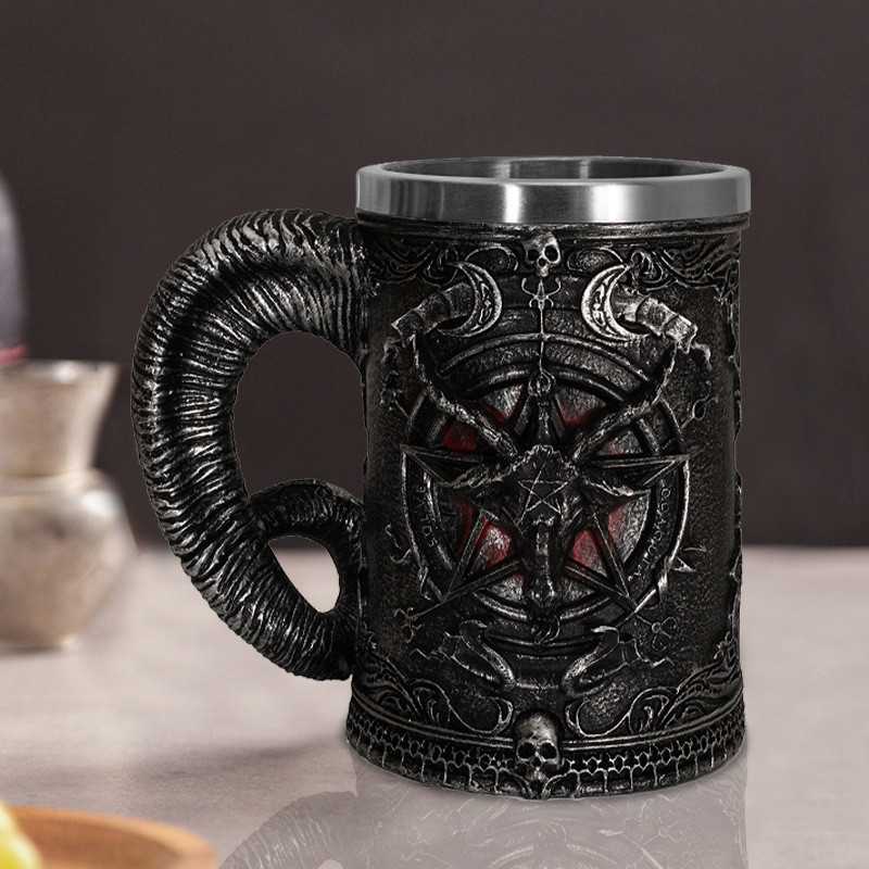 Epicki kubek wykonany z żywicy, z wkładką ze stali nierdzewnej. Wymiary wewnętrzne kubka są idealnych rozmiarów, aby móc przechowywać w nim puszki standardowej wielkości.