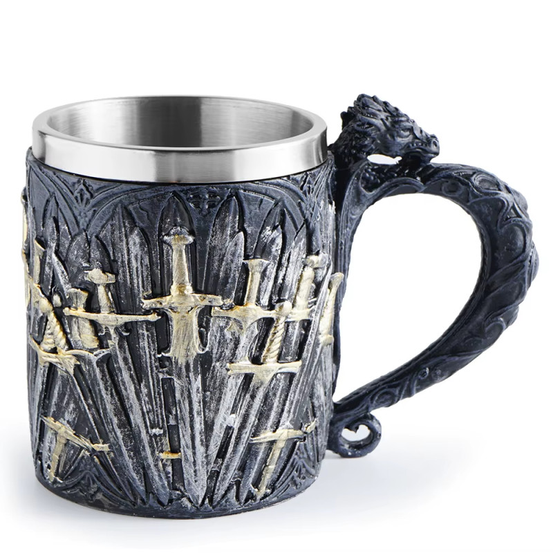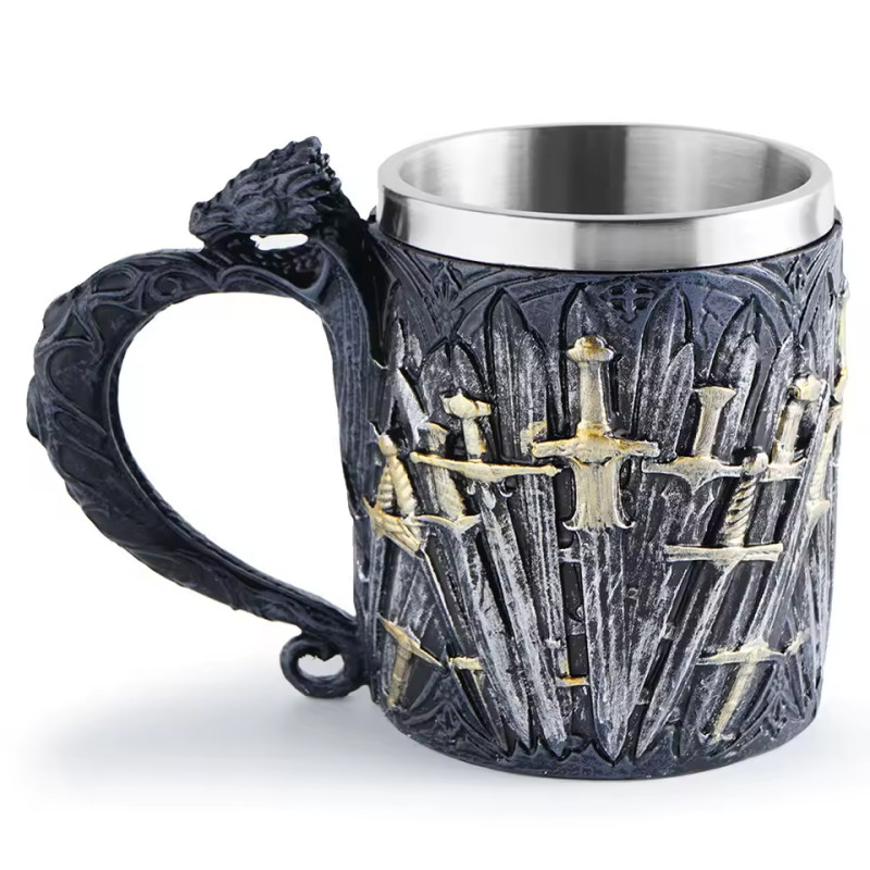Epicki kubek wykonany z żywicy, z wkładką ze stali nierdzewnej. Wymiary wewnętrzne kubka są idealnych rozmiarów, aby móc przechowywać w nim puszki standardowej wielkości.