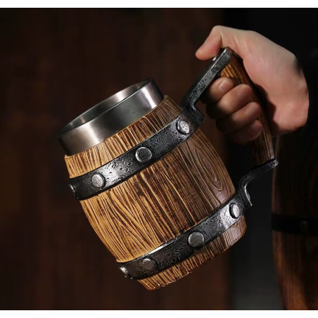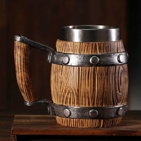 Epicki kubek wykonany z żywicy, z wkładką ze stali nierdzewnej. Wymiary wewnętrzne kubka są idealnych rozmiarów, aby móc przechowywać w nim puszki standardowej wielkości.