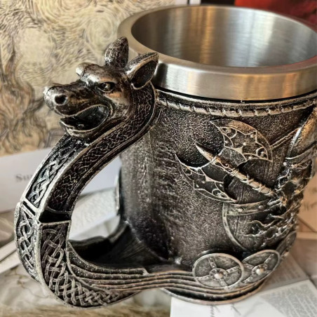 Epicki kubek wykonany z żywicy, z wkładką ze stali nierdzewnej. Wymiary wewnętrzne kubka są idealnych rozmiarów, aby móc przechowywać w nim puszki standardowej wielkości.
