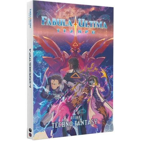 Atlas Techno Fantasy do Fabuli Ultimy to Twój przewodnik po pełnych zaawansowanej technologii, dystopijnych światach, w których odrzuceni przez społeczeństwo bohaterowie walczą z niesprawiedliwością a bezlitośni złoczyńcy są gotowi posunąć się do najgorszych okrucieństw, byle tylko utrzymać swoje przywileje. Przywróćcie nadzieję tym upodlonym, zniszczonym krainom niczym ruchy oporu znane z najsłynniejszych JRPG-ów!   Dlaczego Atlas Techno Fantasy przyda się Waszej drużynie? Zanurzcie się w SF i najbardziej dystopijnym podgatunku JRPG-ów dzięki 3 nowym klasom (Esper, Mutant, Pilotka) oraz nowym heroicznym umiejętnościom, wykorzystując ich nieskończone możliwości! 10 lokacji techno fantasy: archetypowe światy z poradami oraz wskazówkami, jak rozegrać emocjonującą kampanię techno fantasy! Możecie wykorzystać je także jako inspirację, aby tchnąć więcej życia w wasz własny świat! Wykreujcie zaawansowane technologicznie bronie ostateczne, korzystając z zasad tworzenia broni niestandardowych. Odkryjcie Dziwactwa, czyli opcjonalną zasadę, która nada bohaterom więcej charakteru, a następnie wykorzystajcie technosfery, by łączyć klasowe umiejętności na niespotykane dotąd sposoby. Czeka na Was 5 Złoczyńców wymagających nowych bossów, którzy rosną w siłę wraz z biegiem opowieści, stanowiąc prawdziwe, emocjonujące wyzwanie dla bohaterów! Dodatek liczy ponad 200 kolorowych stron, a ilustracje w stylu mangi oraz chibi stworzyli artyści z całego świata! UWAGA: Stylizując na wydania mang, okładka miękka jest czarno-biała, a obwoluta jest kolorowa. Podręcznik jest szyty, nie klejony, aby zwiększyć jego wytrzymałość.