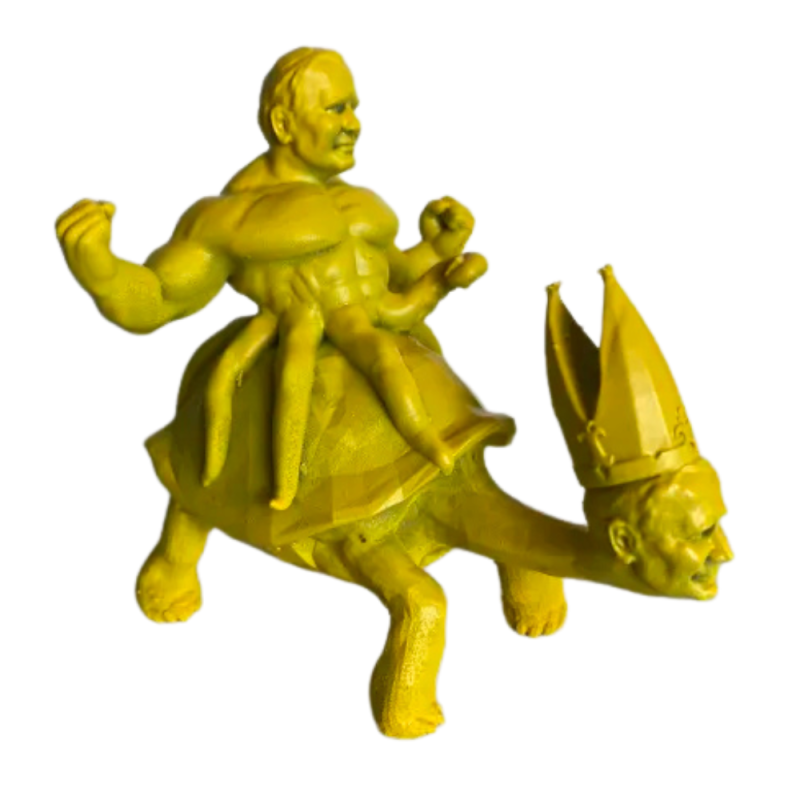 Kiedy byłem szkrabem, oglądałem Mighty Morphin Power Rangers. Z wypiekami wadowickimi na twarzy czekałem na moment, w którym kolorowe zordy połączą się w wielkiego robota! Tego robota. Megazord to było coś. Jak najbardziej, jeszcze jak! Czemu w Polsce nie mieliśmy czegoś takiego? – smuciłem się. I wiesz co? Dziś fantazje spełnia nasz dział twórców figurek! Siłacz Papież, Wielki Polski Przedwieczny i Bestia z Wadowic łączą siły w najlepszym collabo tego roku. Avengersi? Phi, potrzymaj mi kremówkę. Tego nie było nigdy! Nawet Pan Jezus tak powiedział. Nie przemawia to do Ciebie? Dobrze, posłuchaj tej rymowanki: „Możesz zainwestować w Papamobil, który przewiezie Cię z Krakowa do Katowic. Przecudne macki zobaczy postronny widz. Potężna skorupa żółwia, a na niej Ty. Niech ta Bestia z Wadowic tylko napręży bic. Każdy wróg wnet opadnie z sił. Najlepszy to będzie Twój zakup, to nie żaden pic. Za każdą taką figurkę masz startowy Urok na +3”. A teraz masz do koszyka, wpisuj adres wysyłki i nie fikaj.