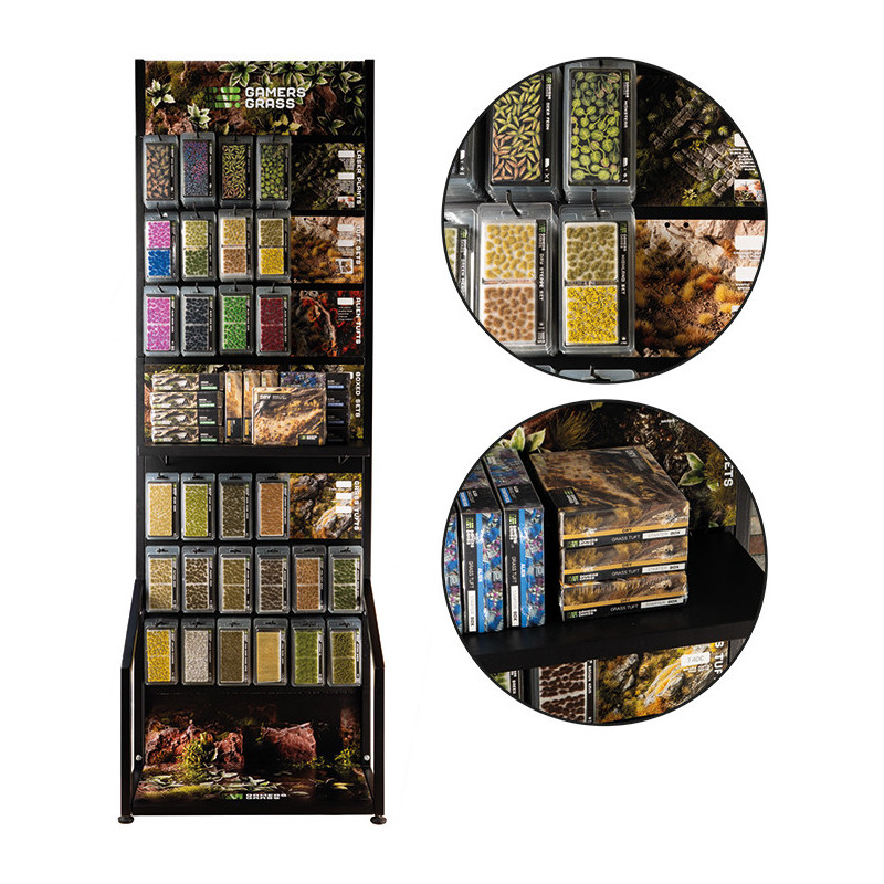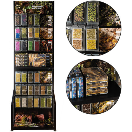 Estetyczny regał z uzupełnieniem, zawierający najważniejsze bestsellery marki Gamers Grass - wszystko w jednym miejscu, w formie wygodnej do sprzedaży.    Wymiary: Wysokość: 200 cm Szerokość: 65 cm Głębokość: 40 cm   Zawartość: 1 szt. metalowy regał Laser Plants: 3 szt. Dumb Cane 3 szt. Agave 5 szt. Alien Rosette 3 szt. Alien Flytrap 5 szt. Bracken 3 szt. Dry Bracken 4 szt. Monstera 3 szt. Plantain Lily 4 szt. Deer Fern 3 szt. Alien Fern Sety tuftów: 4 szt. Green Meadow Set 4 szt. Dry Steppe Set 4 szt. Marshland Set 4 szt. Highland Tuft Set 4 szt. Mystic Nebulae Set Zestawy startowe: 4 szt. Tuft Starter Boes - Dry Grass 4 szt. Tuft Starter Boes - Green Grass 4 szt. Tuft Starter Boes - Alien Grass Tufty Alien: 4 szt. Alien Blue 6 mm 4 szt. Alien Pink 6 mm 4 szt. Alien Turquoise 6 mm 4 szt. Alien Fire Tuft 6 mm 4 szt. Alien Neon 4 mm 4 szt. Alien Void 6 mm 4 szt. Alien Frost 6 mm 4 szt. Alien Purple 6 mm 4 szt. Alien Blood Moon 6 mm 4 szt. Alien Toxic 6 mm Tufty trawiaste: 4 szt. Strong Green 6 mm 4 szt. Dry Green 6 mm 5 szt. Mixed Green 6 mm 5 szt. Dry Tuft 6 mm 4 szt. Light Brown 6 mm 4 szt. Burned Tufts 6 mm 4 szt. Tiny Tufts Dry Green 4 szt. Tiny Tufts Dark Moss 2 szt. Tiny Tufts Beige 2 szt. Tiny Tufts Alien Neon 4 szt. Dry Green 2 mm 4 szt. Moss 2 mm 4 szt. Dark Moss 2 mm 4 szt. Beige 2mm  4 szt. Copper Brown 2 mm 4 szt. Jungle L 12 mm  4 szt. Spikey Green 4 szt. Swamp 4 mm 4 szt. Autumn 5 mm 4 szt. White Flowers 4 szt. Yellow Flowers