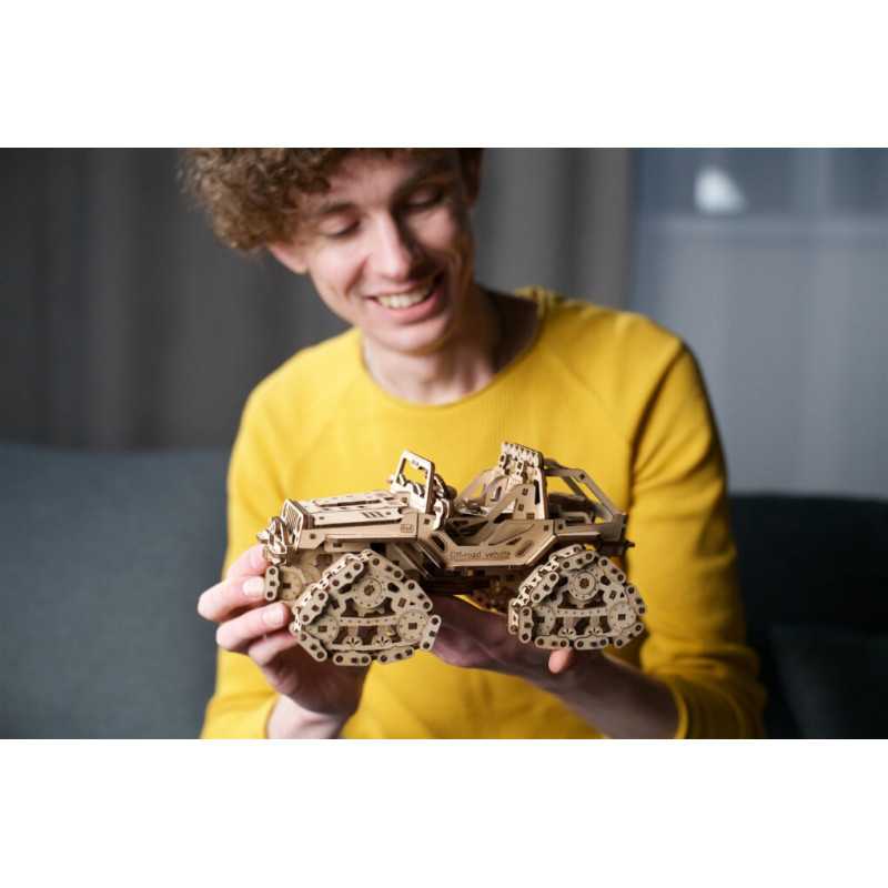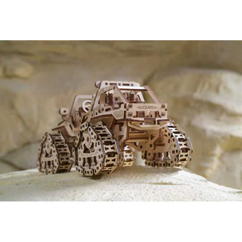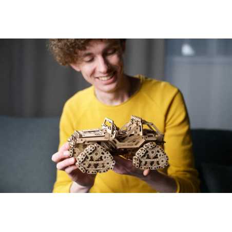 Nasz drewniany samochód terenowy będzie wspaniałym uzupełnieniem Twojej kolekcji pojazdów sportowych, ciężarówek, buggy, motocykli i innych modeli z parku samochodowego Ugears. Tak wielki wybór maszyn, które możesz u nas zamówić, dowodzi jedynie temu, że każdy znajdzie u nas wariant odpowiedni dla siebie lub bliskiego modelarza. Jeśli pojazd gąsienicowy jest właśnie tym, co Cię pociąga, zachęcamy do przejrzenia pozostałych modeli z kolekcji off-roadu: Pustynnego Buggy, Pickupa Drwala, Wojskowej Ciężarówki oraz Scrambler UGR-10.