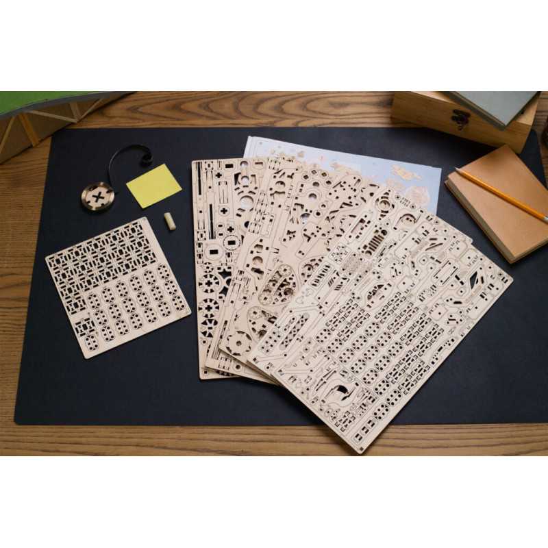 Poziom trudności pojazdu ORV został oceniony jako „średni”. Model drewnianego samochodu terenowego składa się z 423 części, a na jego złożenie będziesz musiał wygospodarować sobie do 8 godzin. Samodzielne lub grupowe konstruowanie owego pojazdu będzie prawdziwą gratką dla fanów modelarstwa. W pudełku znajdziesz laserowo wycięte elementy, które podobnie jak w przypadku każdego dostępnego u nas modelu puzzli 3D, wykonane zostały z najwyższej jakości sklejki drewnianej. Do złożenia pojazdu gąsienicowego ORV nie będziesz potrzebować kleju ani żadnych dodatkowych narzędzi, a wszystko, co niezbędne, znajdziesz w pudełku – w tym także papier ścierny oraz wosk. Pamiętaj, aby użyć go do nasmarowania wszystkich ruchomych części zaznaczonych w instrukcji, zwłaszcza w modułach gąsienicowych – uzyskasz w ten sposób ich optymalne i płynne działanie. W zestawie znajduje się również bogato ilustrowana instrukcja wydana w 11 językach (w tym po polsku).