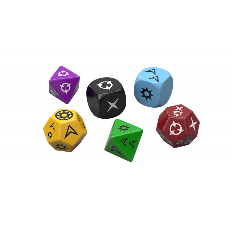 Genesys RPG: Zestaw Kostek Narracyjnych zawiera komplet kości, które pozwolą na rozpoczęcie przygody z dowolnie wykreowanym uniwersum na mechanice Genesys.