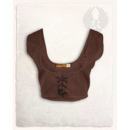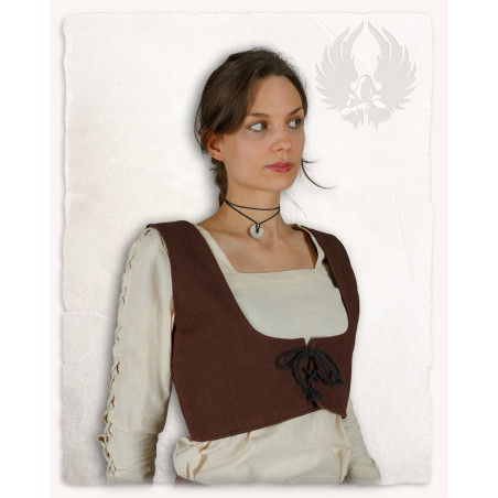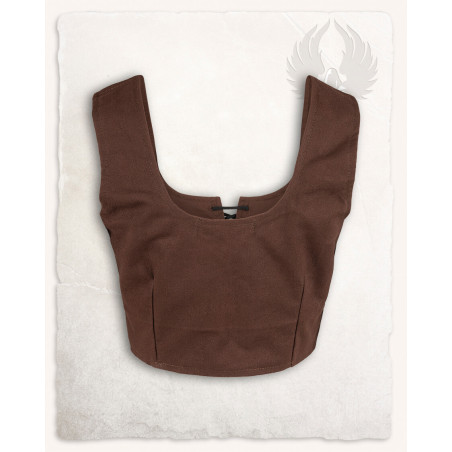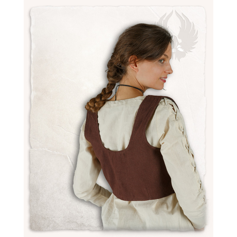 Gorset „Annabelle” to lekki gorset pod biust, noszony na bluzkę, podkreślający kobiecą sylwetkę. Szerokie ramiączka zapewniają wygodę, a sznurowanie z przodu pozwala na indywidualne dopasowanie. Uszyty z wytrzymałego płótna bawełnianego, pasuje do wielu kostiumów — od zadziornej karczmarki po zalotną poszukiwaczkę przygód. Najlepiej prezentuje się w zestawie z bluzką „Annabelle” lub inną z naszej oferty. W porównaniu do gorsetu „Anna” zmodyfikowano krój ramion dla lepszego dopasowania.