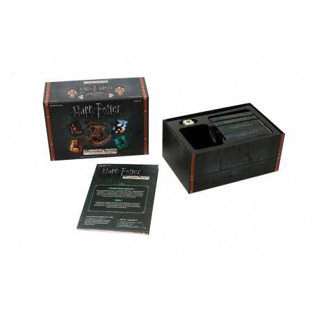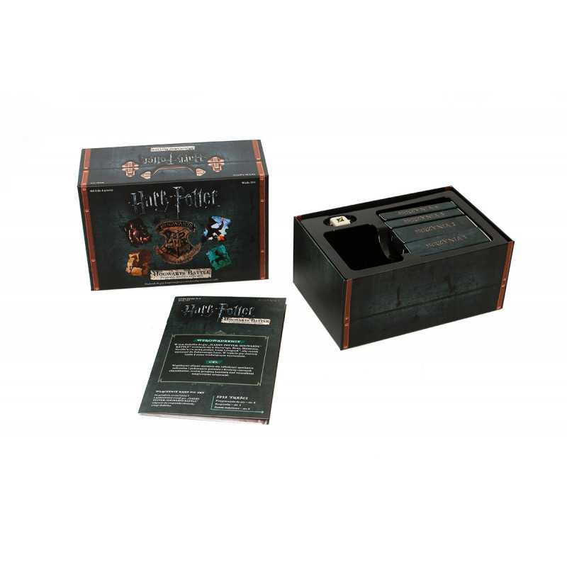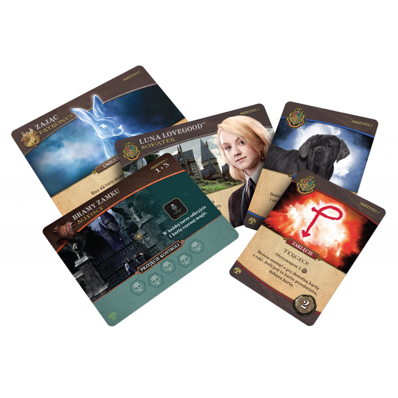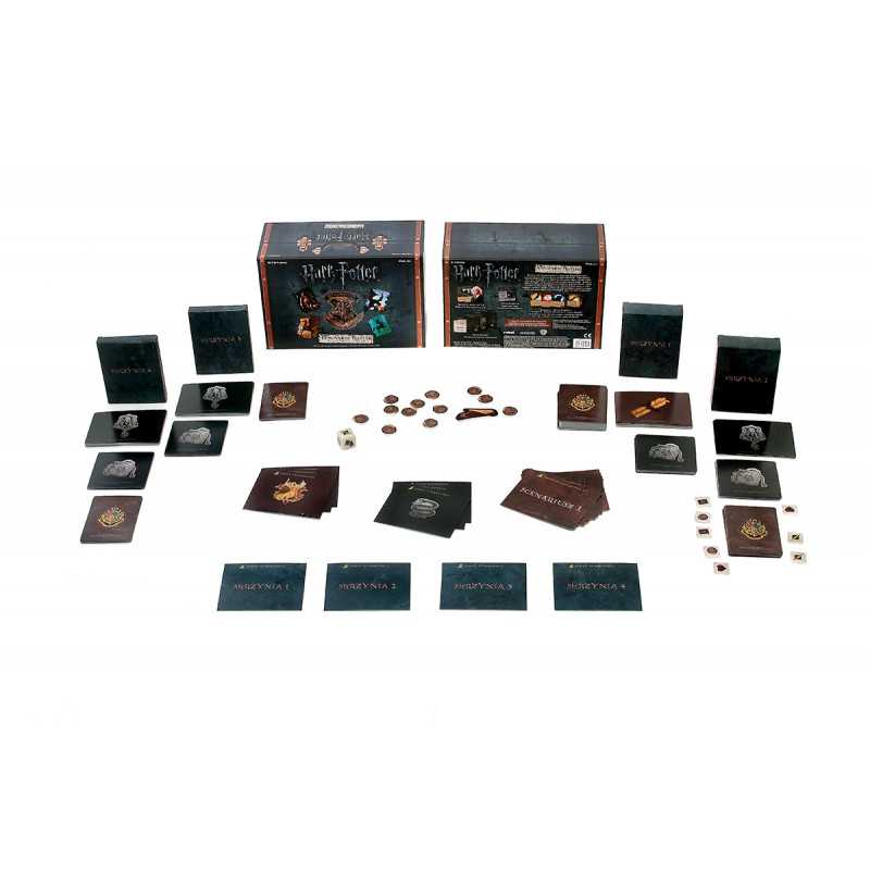 To kooperacyjna gra karciana w której, jako HARRY POTTER™, RON WEASLEY™, HERMIONA GRANGER™ i NEVILLE LONGBOTTOM™, stawiacie czoła serii mrocznych zdarzeń w tytułowej szkole dla czarodziejów. W trakcie gry zmierzycie się z drużyną czarnych charakterów, którzy stopniowo, miejsce po miejscu, próbują podporządkować sobie świat czarodziejów.