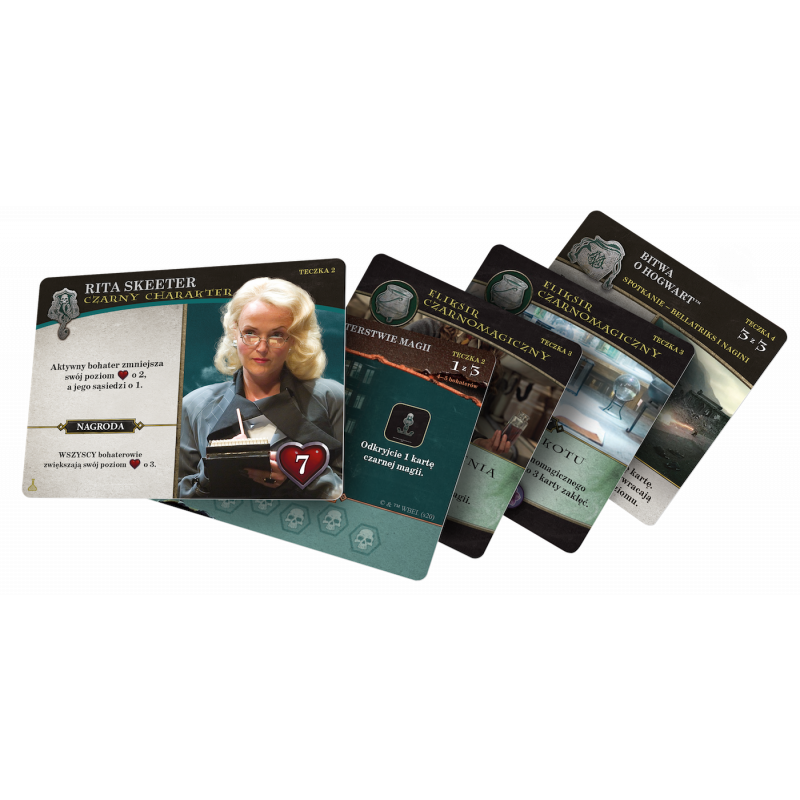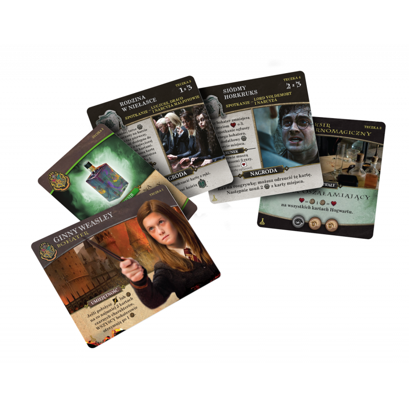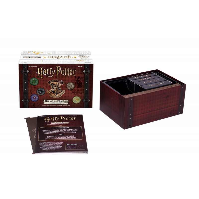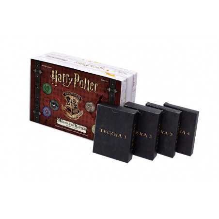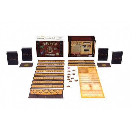 To kooperacyjna gra karciana w której, jako HARRY POTTER™, RON WEASLEY™, HERMIONA GRANGER™ i NEVILLE LONGBOTTOM™, stawiacie czoła serii mrocznych zdarzeń w tytułowej szkole dla czarodziejów. W trakcie gry zmierzycie się z drużyną czarnych charakterów, którzy stopniowo, miejsce po miejscu, próbują podporządkować sobie świat czarodziejów.
