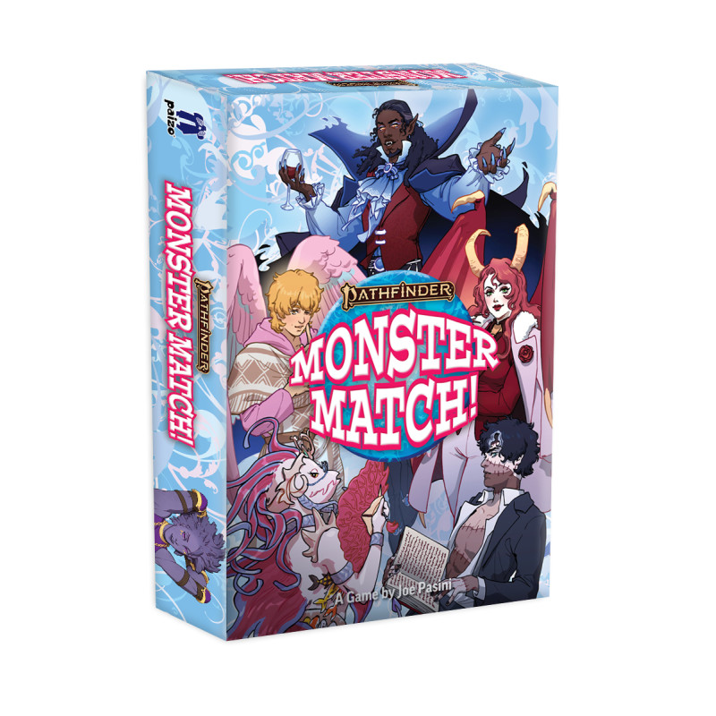 Jedyną rzeczą bardziej niebezpieczną niż mieszkańcy świata Pathfinder jest… potworny świat randkowania na Golarionie! W Pathfinder Monster Match! rywalizujesz ze znajomymi, próbując zdobyć względy najróżniejszych stworzeń – od żywiołowych wampirów i przystojnych smoków po… świadomą kałużę galarety? Czemu nie! Gdy animus zmienia się w miłość, otwiera się zupełnie nowy świat romantycznych możliwości!