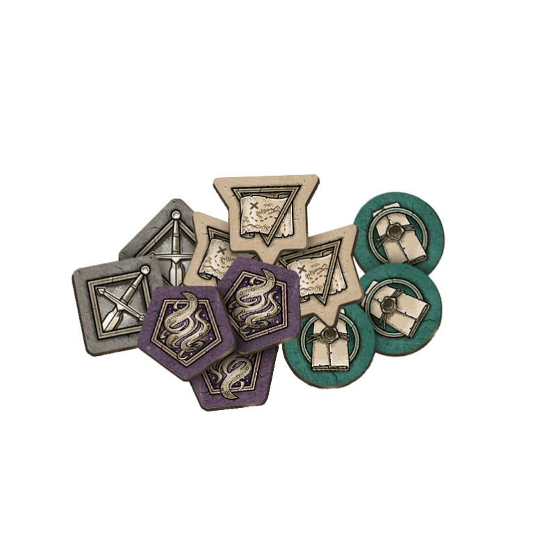• Zagrywaj karty i używaj specjalnych efektów, aby zdobywać symbole, które odpowiadają Twoim czynom. To talia opowieści wskazuje, które symbole w danej rundzie będą zapewniały punkty zwycięstwa, ale wszystkie karty akcji mogą nam przynieść określone korzyści. Kluczem do zwycięstwa są trafne decyzje i baczne obserwowanie sytuacji przy stole.