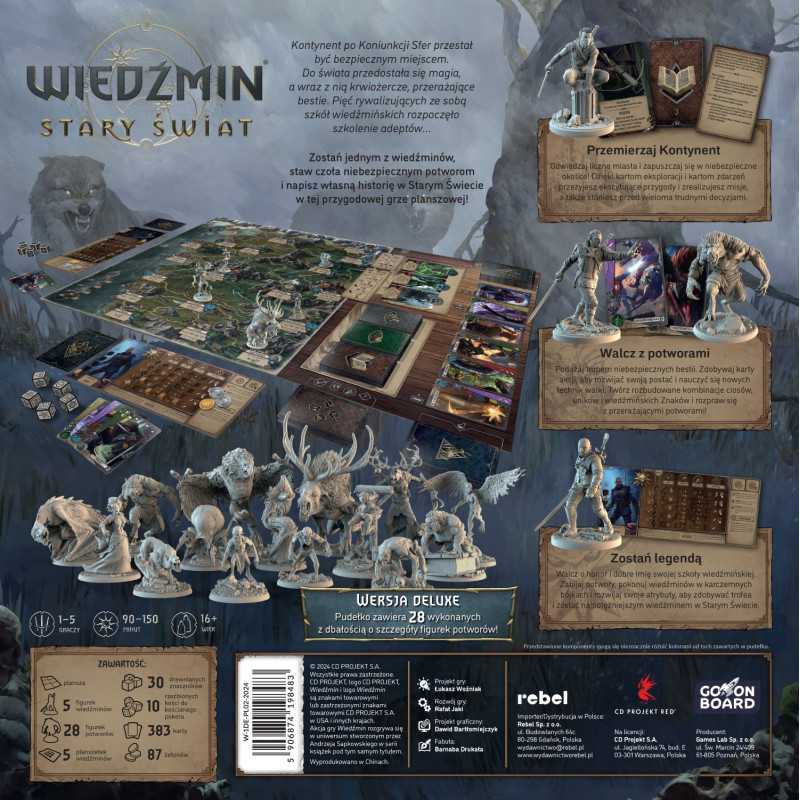 Wiedźmin: Stary Świat to przygodowa gra planszowa, która zabiera graczy w podróż po fantastycznym świecie pełnym niebezpieczeństw, tajemnej magii, mrocznych sekretów i niezwykłych miejsc, które tylko czekają na odkrycie. Akcja gry toczy się w uwielbianym przez fanów uniwersum Wiedźmina, wiele lat przed wydarzeniami z sagi o Geralcie z Rivii, w czasach, gdy plaga potworów trawiła Kontynent. Przeciwdziałać jej byli zdolni tylko wiedźmini - profesjonalni zabójcy szkoleni do walki z istotami wrogimi ludziom.