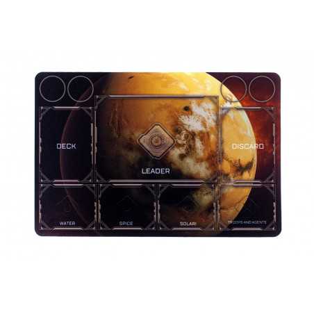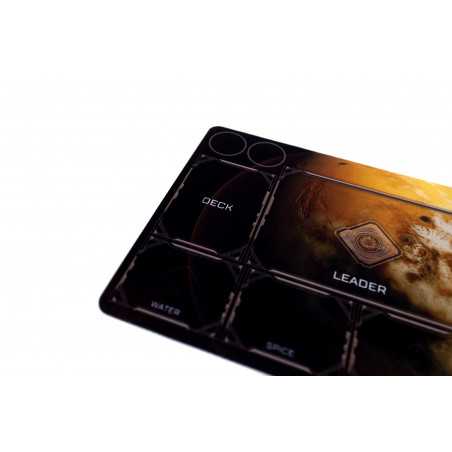 Antypoślizgowa, gumowa planszetka gracza dedykowana do gry Diuna Imperium. Na macie są wyznaczone pola do gry. Motyw z pustynną planetą. Taka oprawa wizualna pozwala lepiej wczuć się w grę, co znacznie zwiększa doznania z rozgrywki. Poza zwiększonymi walorami estetycznymi gry, mata dodatkowo chroni elementy przed zniszczeniem oraz przesuwaniem.