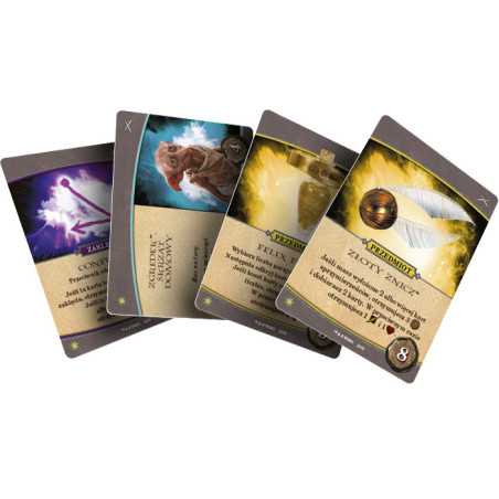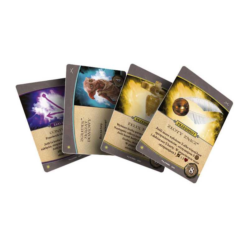 Zestaw 4 wyjątkowych kart dodatkowych, dzięki której nasze zaklęcia będą jeszcze celniejsze, a obrona lepiej przygotowana na ataki przeciwnika. Od teraz pojedynkujący się czarodzieje będą mogli skorzystać z pomocy Zgredka, który pozwoli niszczyć karty z sali, a także użyć zupełnie nowego zaklęcia - Confudus. Dodatkowo do gry dołączają dwa przydatne przedmioty, czyli Złoty znicz oraz nas ulubiony eliksir Felix felicis.