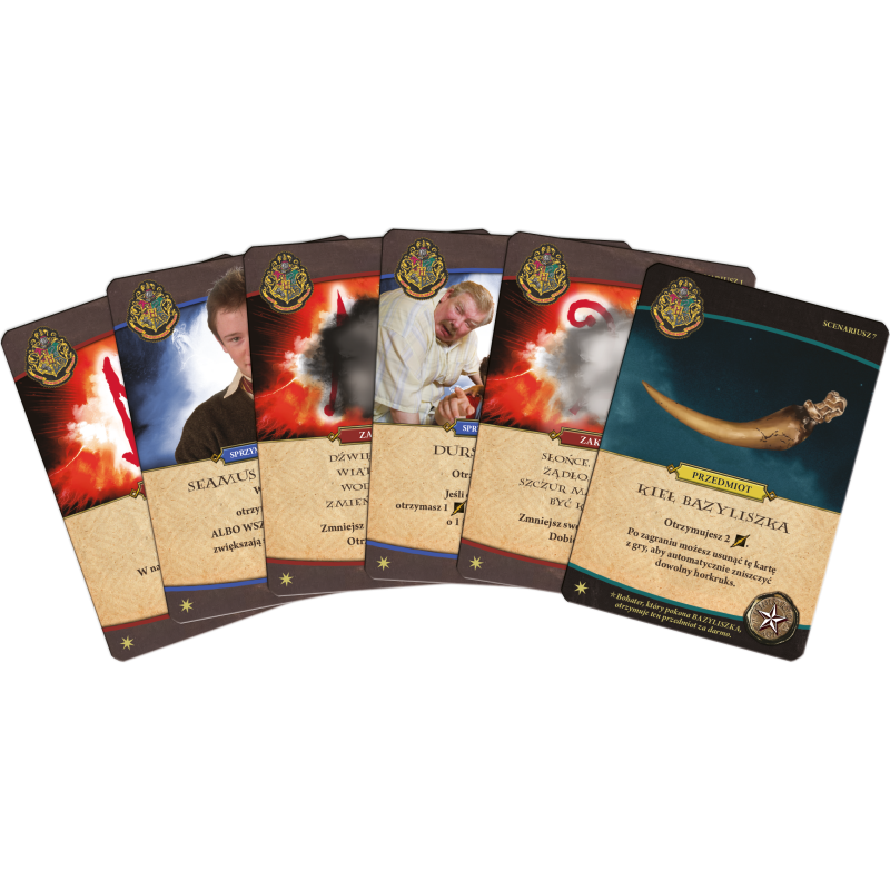 Zestaw dodatkowy zawierający 6 ekskluzywnych, zupełnie nowych kart, które będziemy mogli wcielić do swojej talii, by stać się jeszcze silniejszymi czarodziejami! Od teraz walcząc z bazyliszkiem będziemy mogli zyskać unikatowy i niezwykle przydatny przedmiot, a w czasie zabawy nauczymy się trzech kolejnych czarów i spotkamy dwóch nowych sprzymierzeńców. Ku chwale Hogwartu!