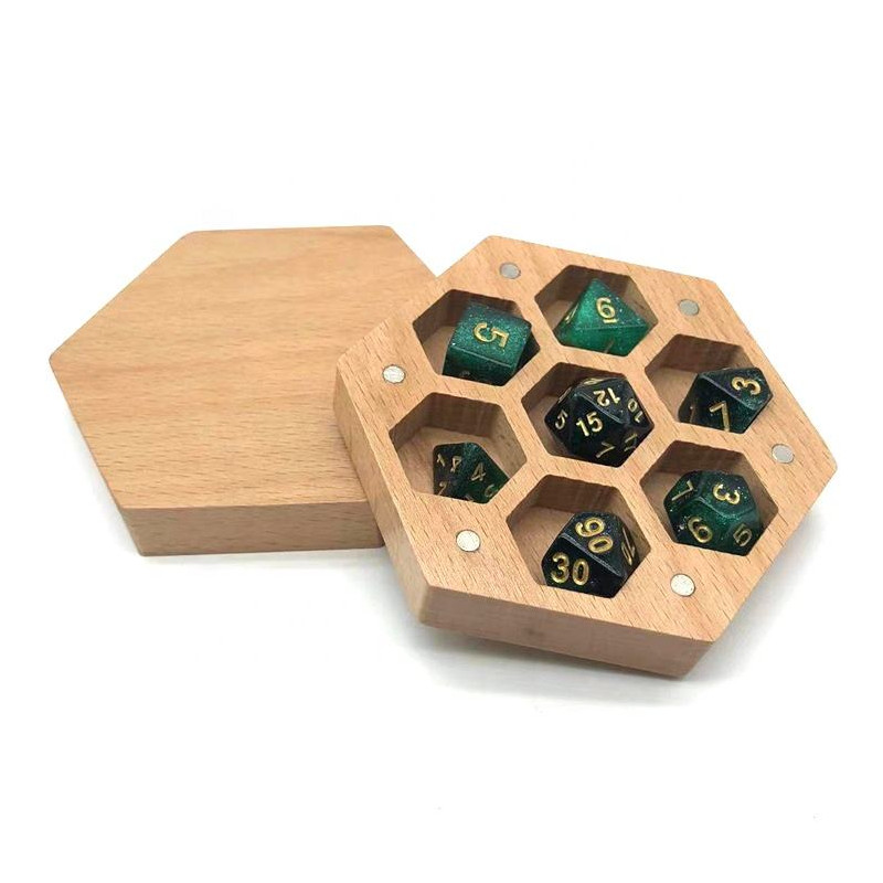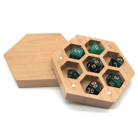 HEX DREWNIANE MAGNETYCZNE ETUI PUDEŁKO NA ZESTAW 7 KOŚCI RPG