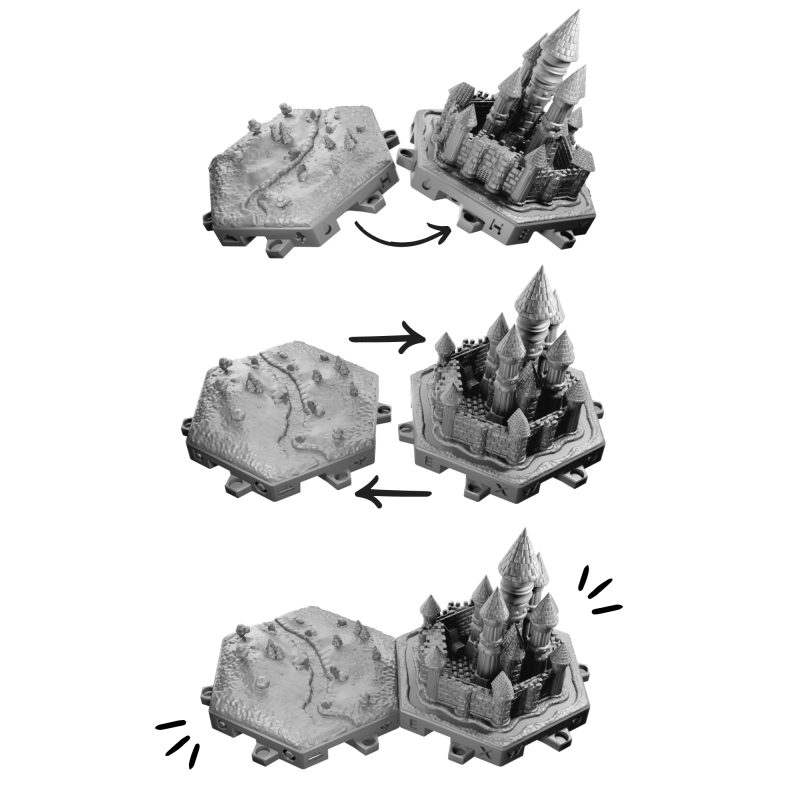 • Wszystkie tereny HexWorld można ze sobą dowolnie łączyć, tworząc niekończące się mapy.