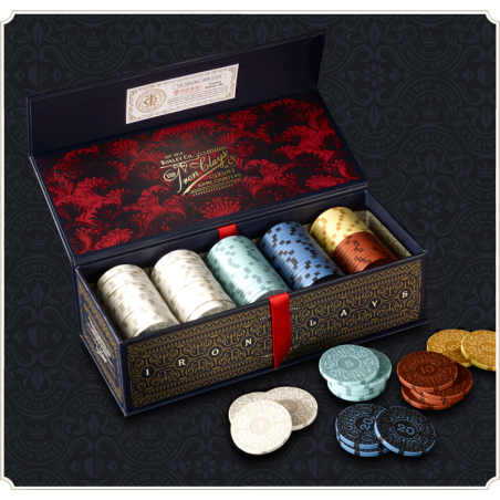 W 2017 roku Roxley Games postanowiło stworzyć nowy zestaw żetonów do gier, które zachowałyby wrażenia i użyteczność wysokiej jakości żetonów kasynowych, ale charakteryzowałyby się wyjątkową estetyką. Nikt nie nadawał się do tego lepiej niż wielokrotnie nagradzane studio Chad Michael. W kolaboracji, ci dwaj giganci zaprojektowali nowy rodzaj żetonów do gier nadają się one nie tylko do pokera, ale do wszystkich gier stołowych   CECHY Zestaw 100 żetonów został zaprojektowany tak, aby pasował do wielu gier w stylu euro. Są one również idealne do podliczania punktów lub śledzenia stanu zdrowia Iron Clays 100 są dostarczane w wytrzymałym, foliowanym, wytłaczanym, magnetycznie zamykanym pudełku. W pudełku są przechowywane w plastikowych tackach, które można układać w stosy, dzięki czemu mogą być łatwodostępne wszystkim graczom Łącznie żetony mają wartość 1,640
