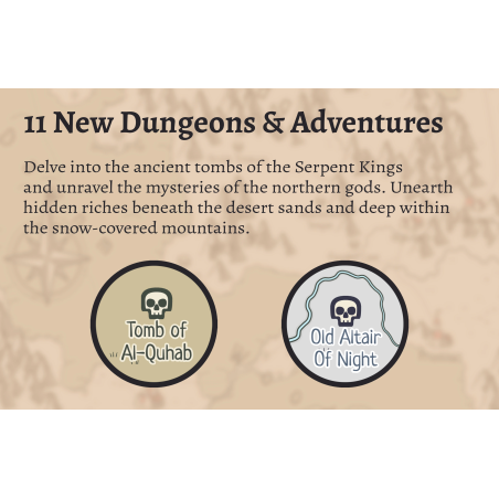 To rozszerzenie jest pełne treści, które zapewnią Tobie i Twoim przyjaciołom tygodnie niekończącej się zabawy. Pomysłowy Mistrz Gry wykorzysta te materiały do stworzenia niezliczonych nowych przygód.