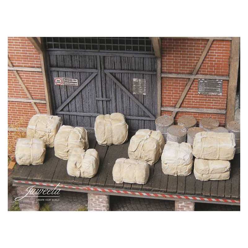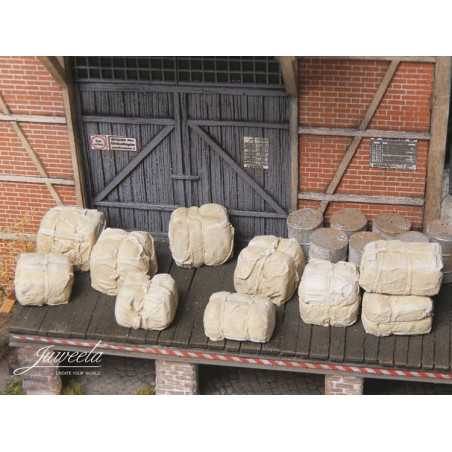 Bele surowca, na przykład bawełny, które możesz wykorzystać jako ładunek na kolej lub ciężarówkę. Ułożone w zajezdni kolejowej czy jako detal w twojej dioramie i modelu wzbogacą każdą dioramę, a w przypadku stołu bitewnego mogą służyć jako jakaś bariera...