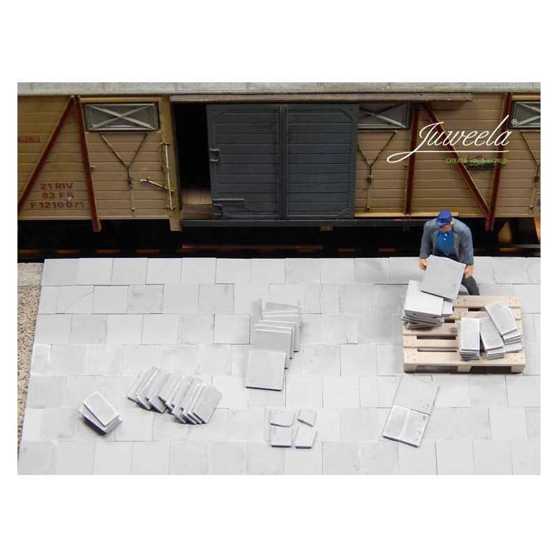 kwadratowe jasnoszare w ilości dwustu osiemdziesięciu sztuk dla skali 1:45 Wielkość: 1.10 x 1.10 x 0.10 cm
