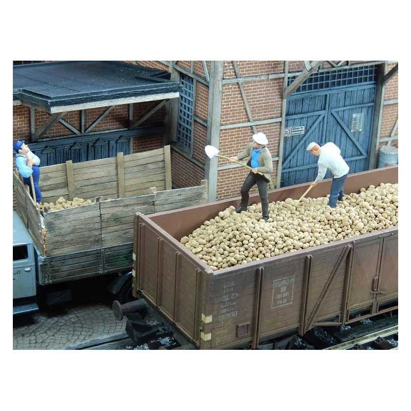 Prawdziwe ziemniaki są znakomite, można z nich robić frytki, placki i różne inne dania. Z tych co prawda nic takiego nie zrobisz, ale hej, możesz zawsze wzbogacić nimi swoją dioramę! Zarówno jako produkt jadący na wagonach, ciężarówkach lub stojący w hałdach i czekający na załadunek. Ziemniaki są zacne!