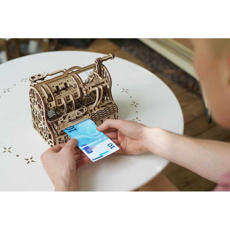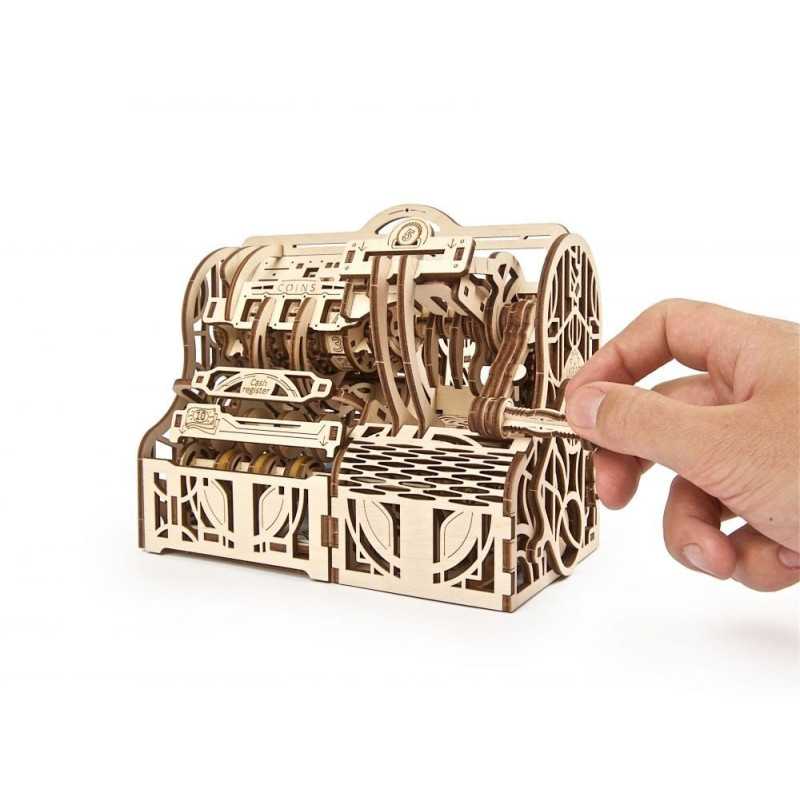 Wszyscy wiemy, że prawdziwe wartości w życiu nie mają odpowiednika pieniężnego, ale jeśli zdarzy się, że będziesz potrzebował przechowywania swojej gotówki, UGEARS może zaoferować Ci coś, co wiąże się z zabawą i nauką. Przedstawiamy Twoją nową mechaniczną skarbonkę, Kasę Fiskalną.