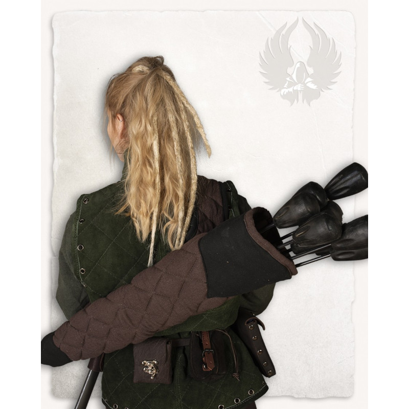 Kołczan w naturalnym kolorze jest częściowo maskujący i świetnie sprawdza się dla zwiadowców lub postaci poruszających się skrycie. Można go również używać do przenoszenia krótkich mieczy na plecach.