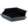 • Dice tray 23 cm wykonany ze skóry i aksamitu. Doskonały wybór aby utrzymać kostki w jednym miejscu i wygłuszyć dźwięk ich toczenia się. Dice tray jest wykonany ze skóry, a w środku wyłożony aksamitem. W narożnikach znajdują się wytrzymałe, metalowe napy dzięki którym możemy płaską matę zmienić w miseczkę do rzucania kośćmi. Materiał: Skaj