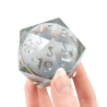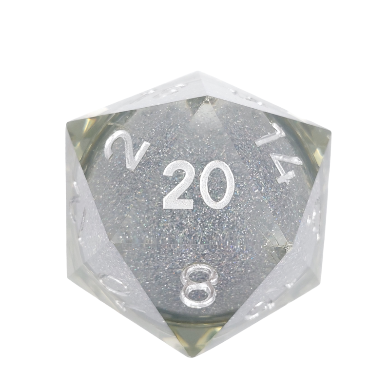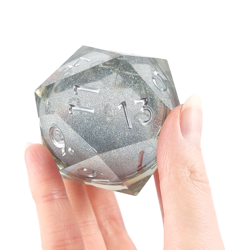 Kostki mają płynne wnętrze - po rzucie widać w nich pływający brokat.