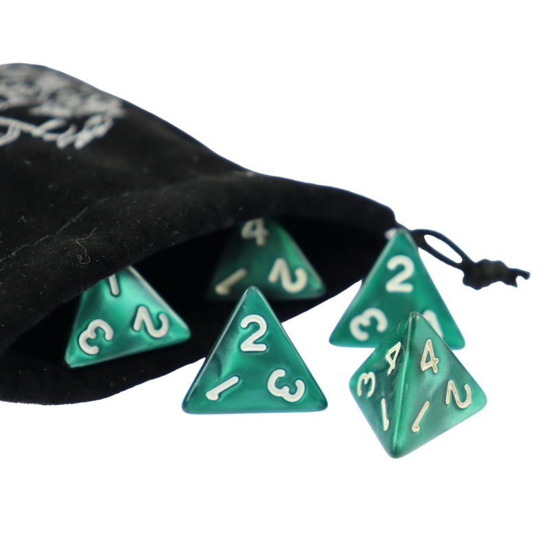 Epicka akrylowa czterościenna kość RPG będąca podstawą każdej sesji.