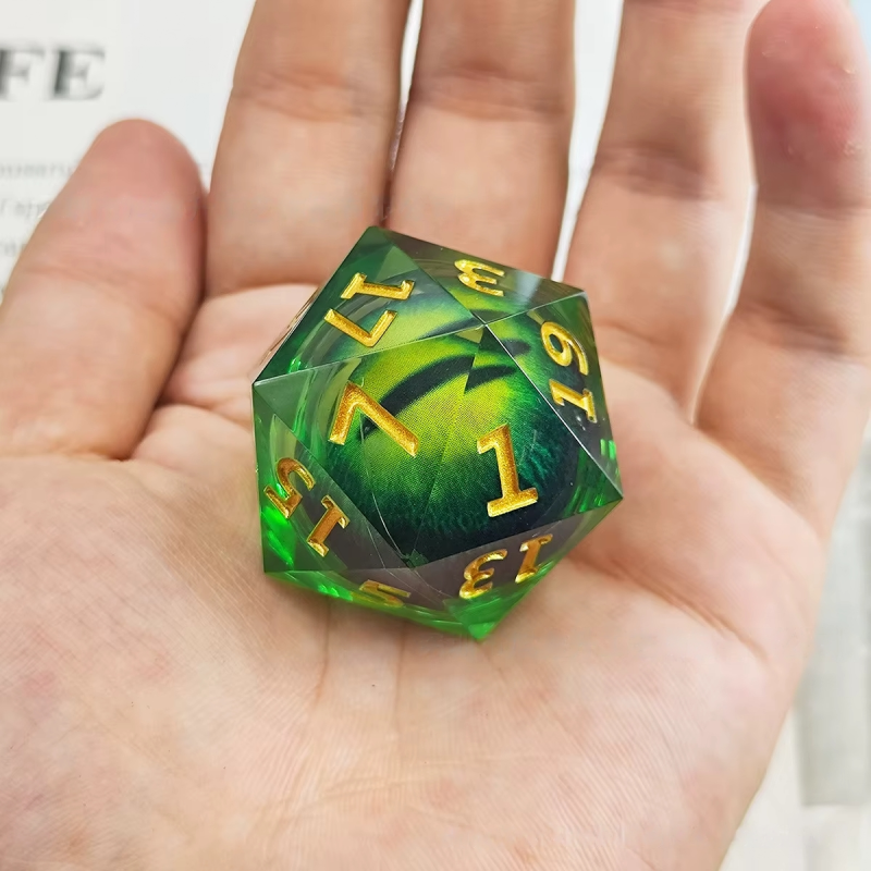 Kostka ma płynne wnętrze i ruchome oko, które patrzy na każdy Twój ruch. Oko po rzucie trzęsie się, a na koniec spogląda prosto w górę.