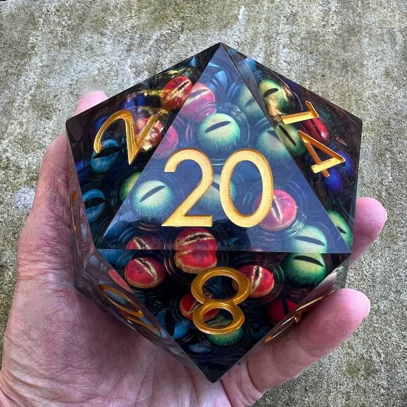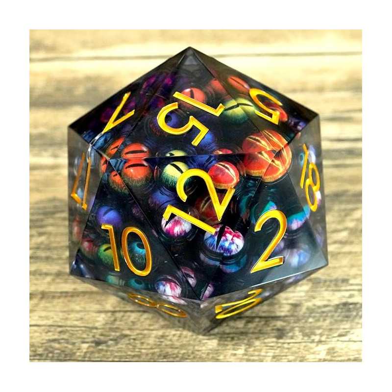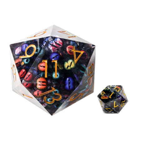 Kostka ma płynne wnętrze i ruchome oko, które patrzy na każdy Twój ruch. Oko po rzucie trzęsie się, a na koniec spogląda prosto w górę.