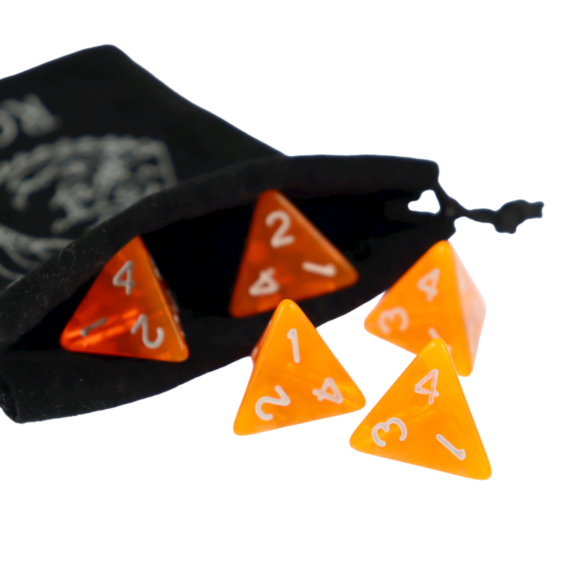 Epicka akrylowa czterościenna kość RPG będąca podstawą każdej sesji.