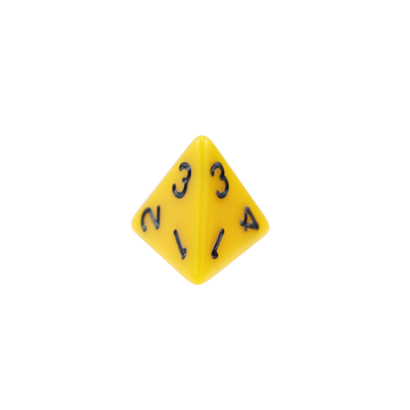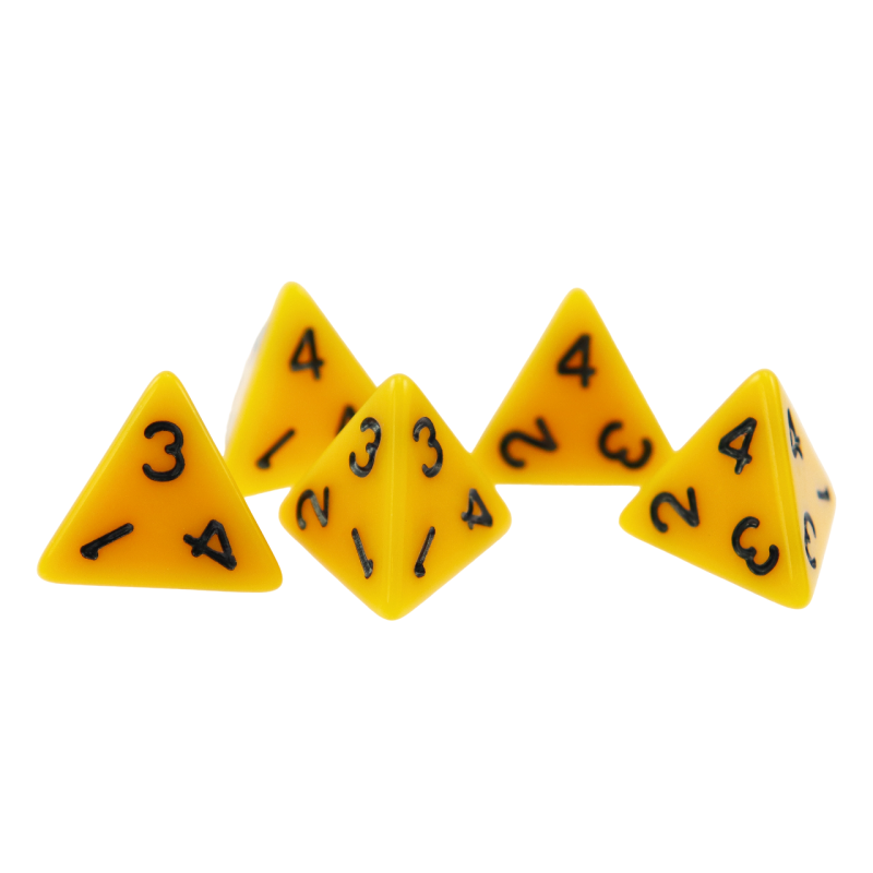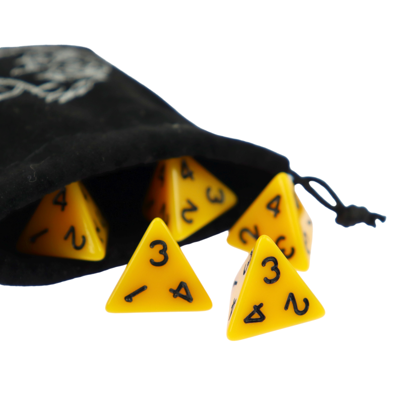 Epicka akrylowa czterościenna kość RPG będąca podstawą każdej sesji.
