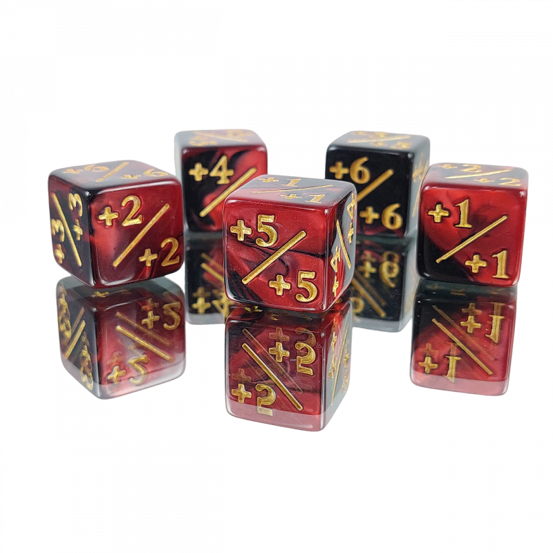 Dwie kostki służące do liczenia bonusów do gry w Magic: The Gathering (MTG).