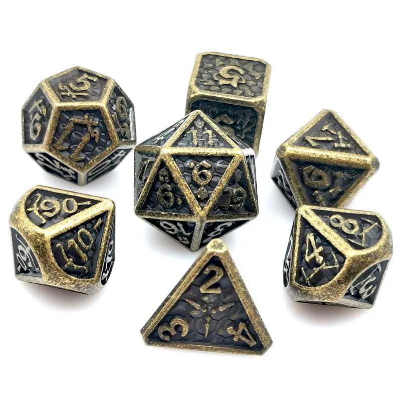 Zestaw siedmiu metalowych kości do gier fabularnych
