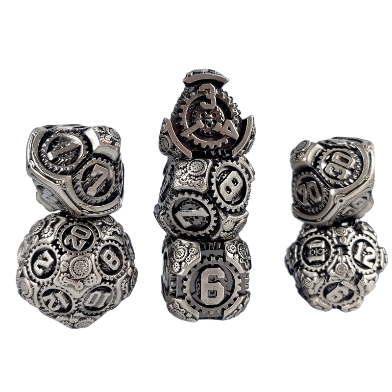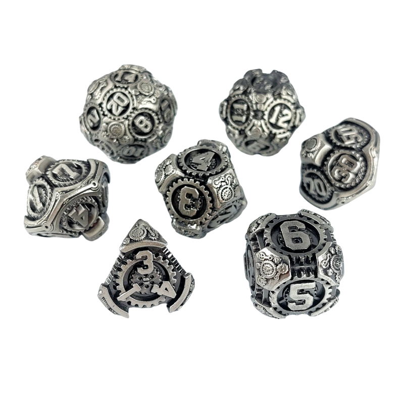 Zestaw siedmiu metalowych kości do gier fabularnych