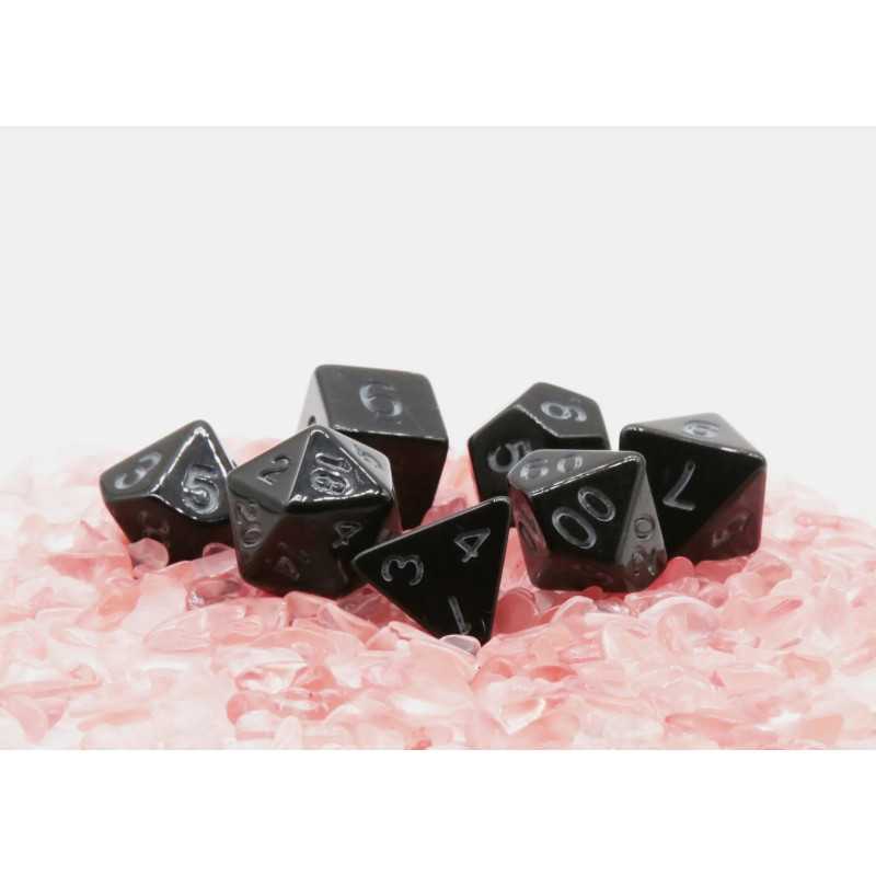 Komplet siedmiu klasycznych, matowych kości. Niezwykle wysoka jakość odlewu, precyzja żłobienia oraz malowania numerów, czynią z nich podstawowy wybór dla wielu graczy, zarówno początkujących, jak i zaawansowanych.