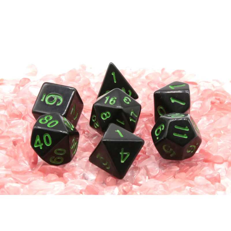 Kostki RPG Czarno-Zielony Zestaw 7 Kości Kostek