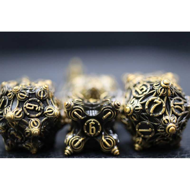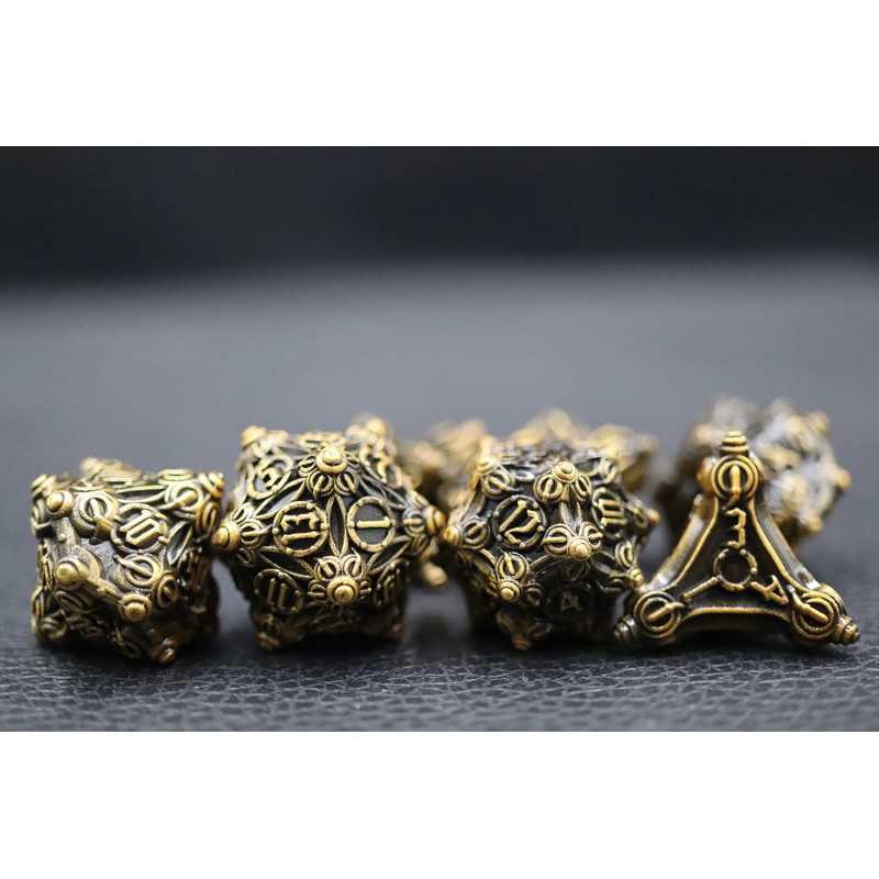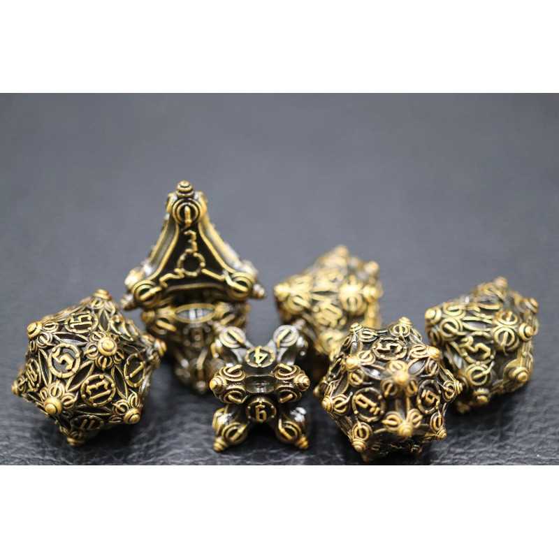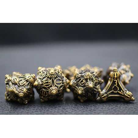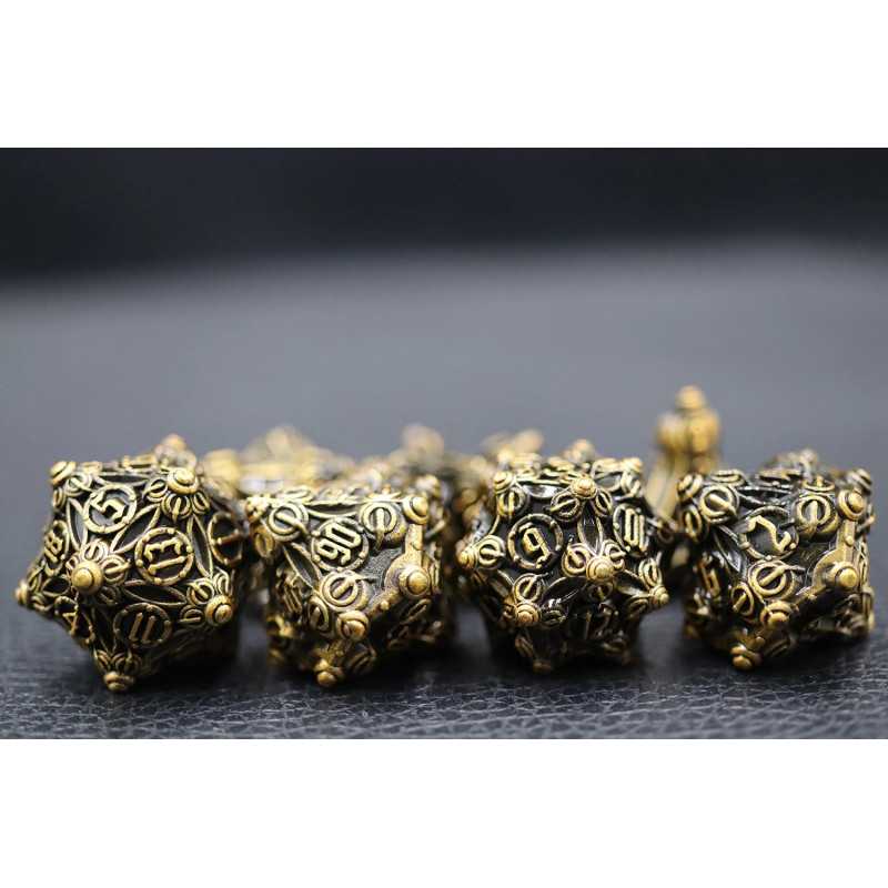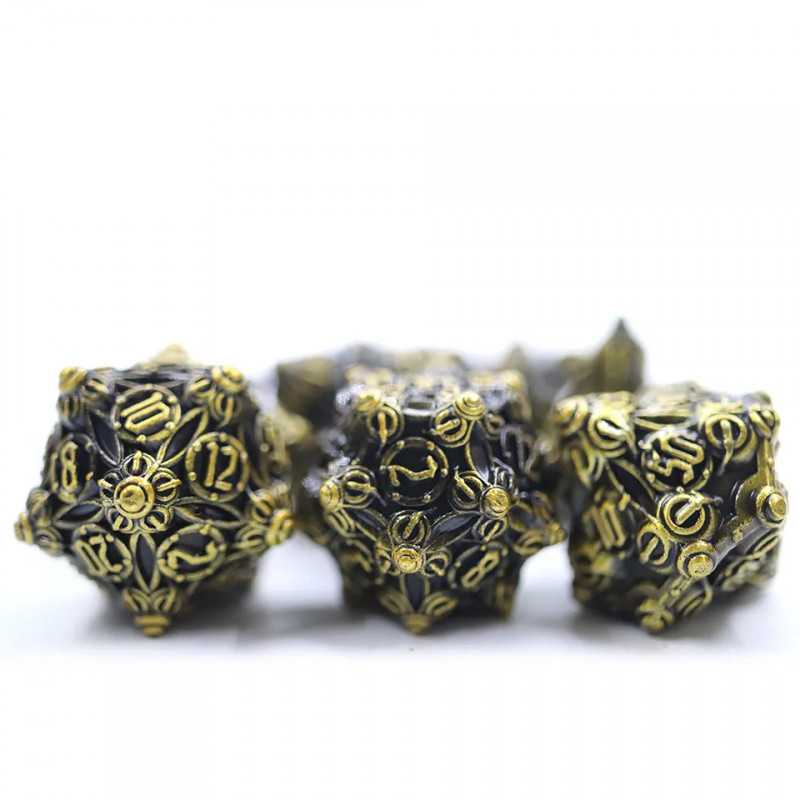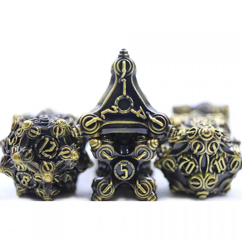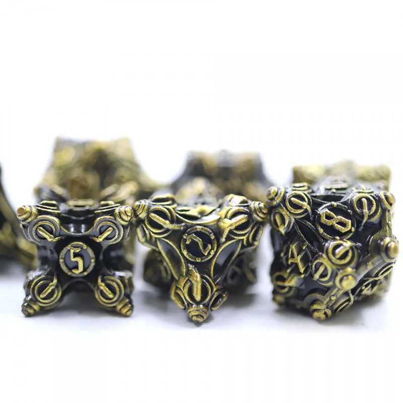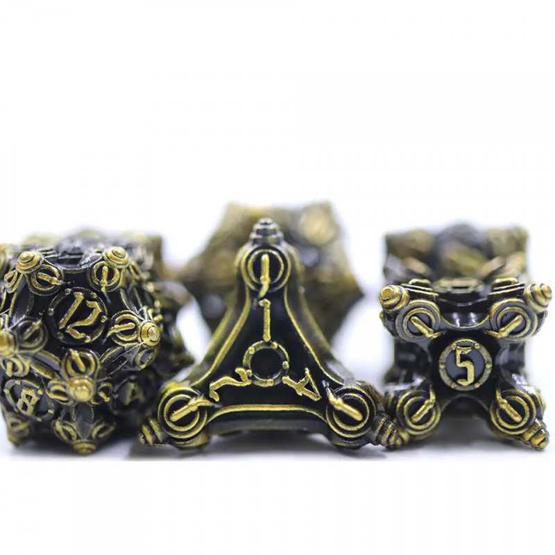 Zestaw siedmiu metalowych kości do gier fabularnych