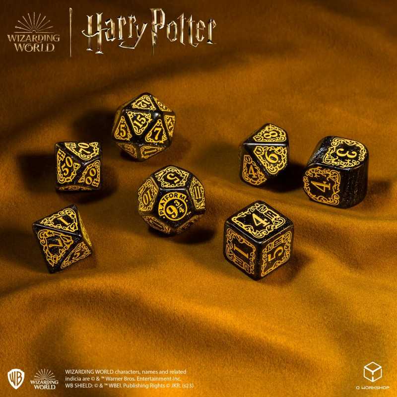 Poczuj magię Czarodziejskiego Świata razem z Q WORKSHOP! Oto Harry Potter. Zestaw Kości Modern Hufflepuff! Wzór grawerunków pyszni się mnóstwem symboli i detali nawiązujących do domu znanego z wielkiej lojalności jego członków. Materiał kości lśni dzięki zmieszaniu z brokatowym pyłem; sprawia to, że czerń i żółty na nich wyglądają wprost niesamowicie!