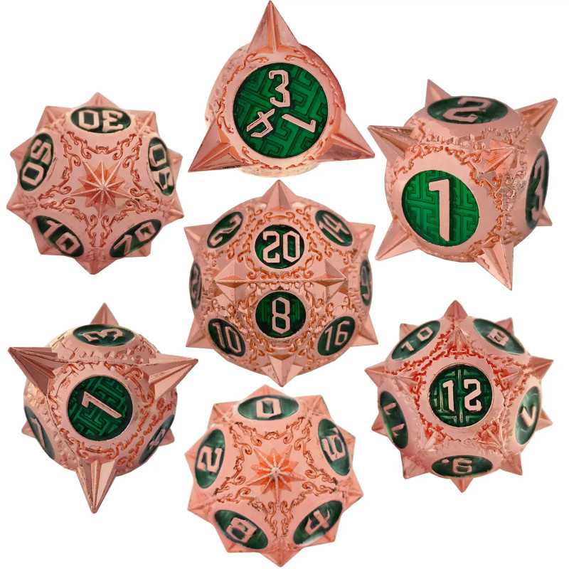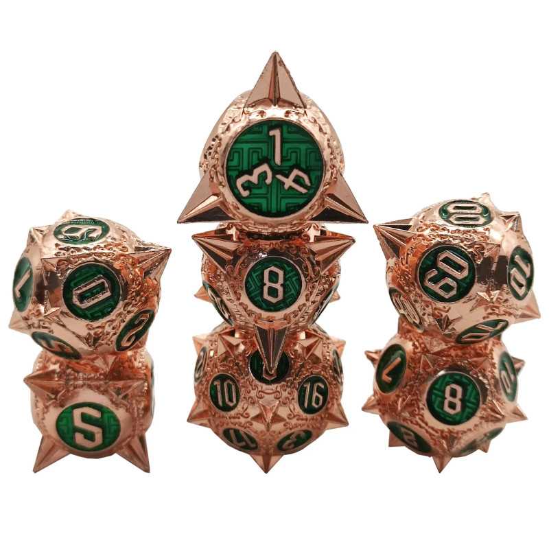 Zestaw siedmiu metalowych kości do gier fabularnych