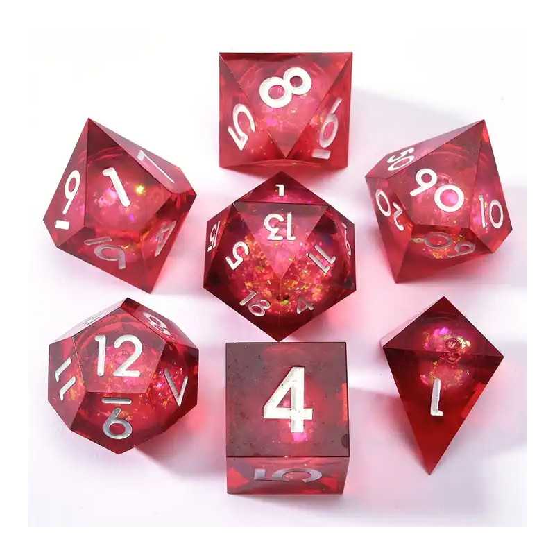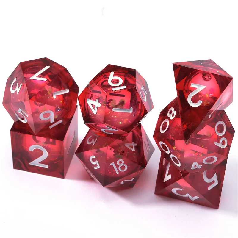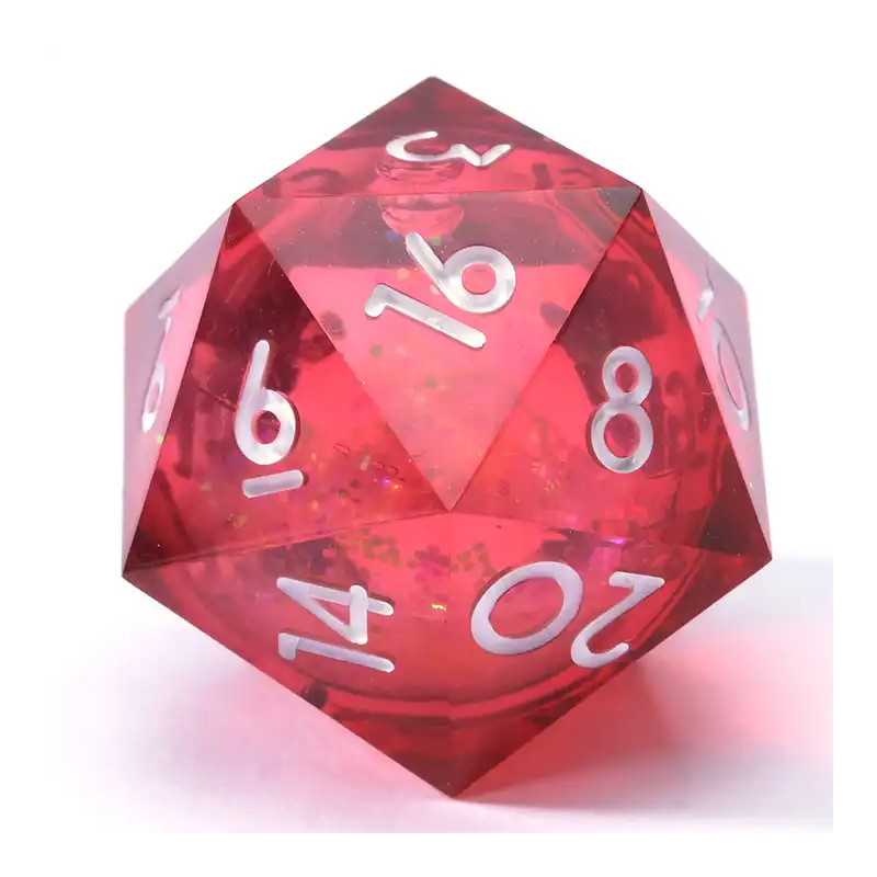Kostki mają płynne wnętrze - po rzucie widać w nich pływający brokat.