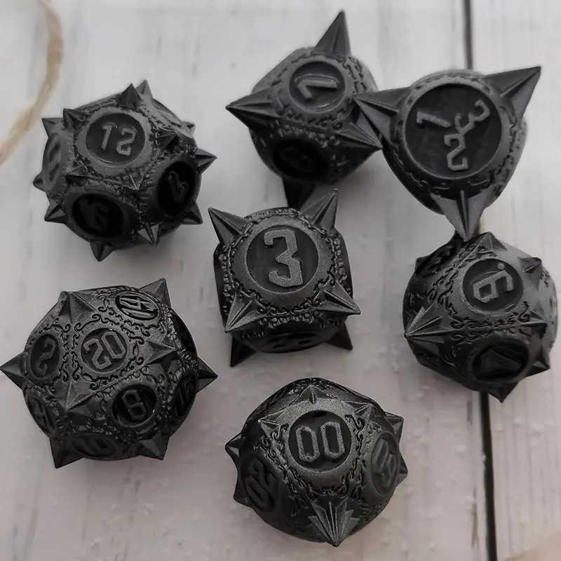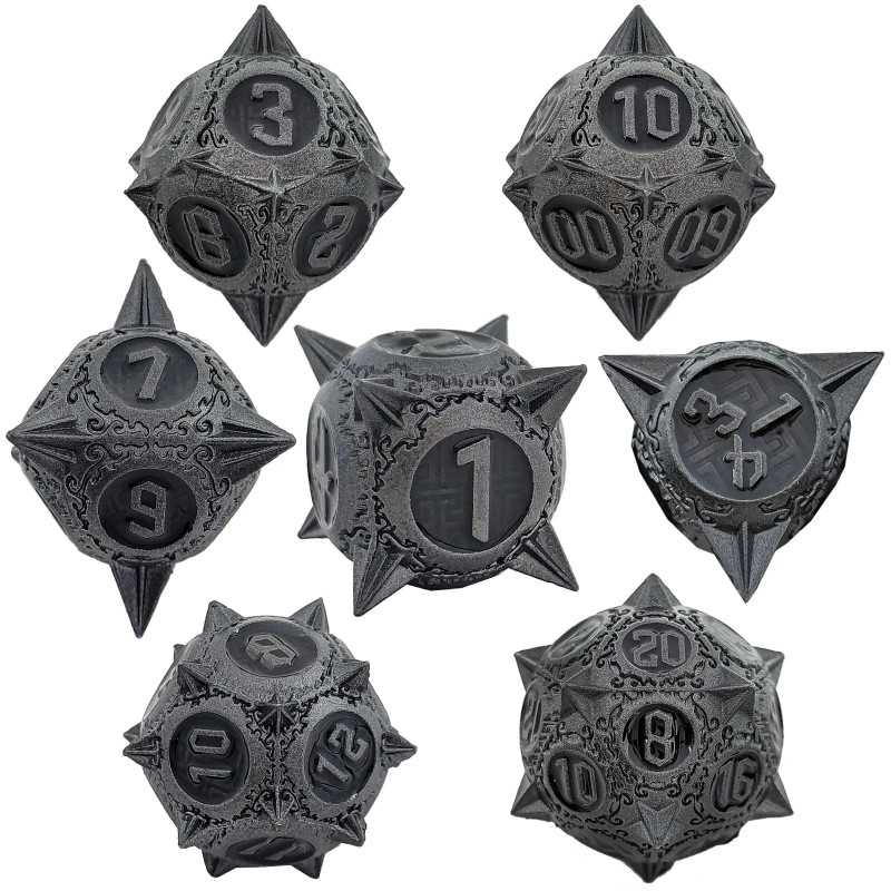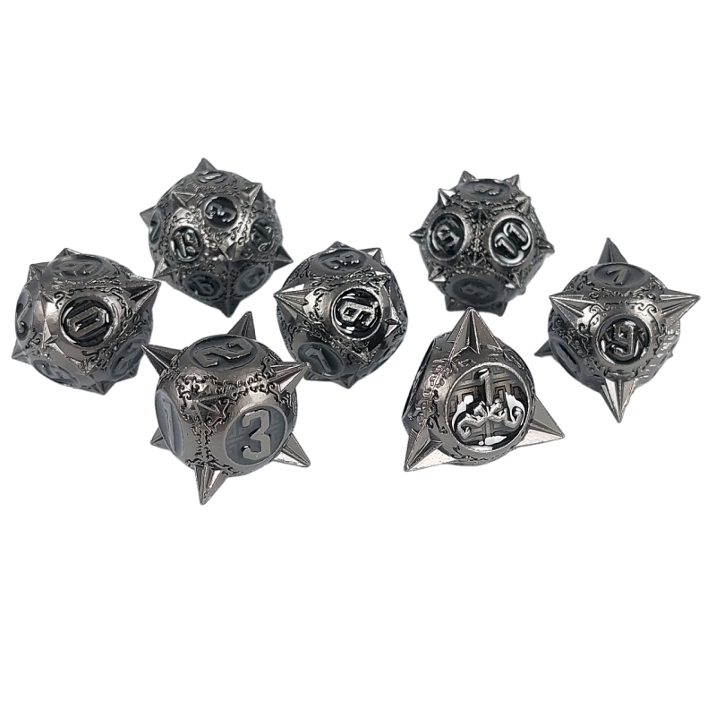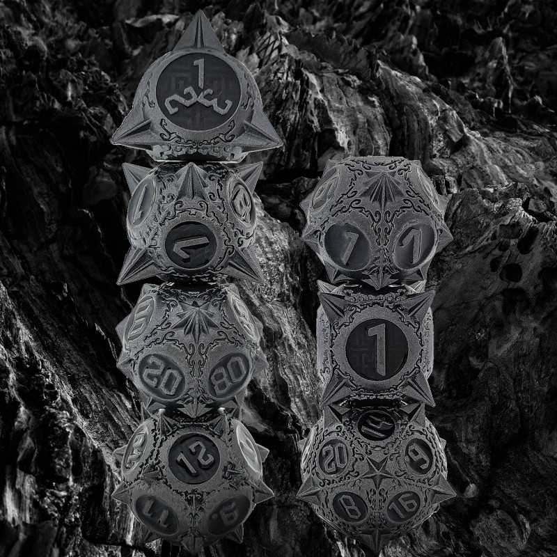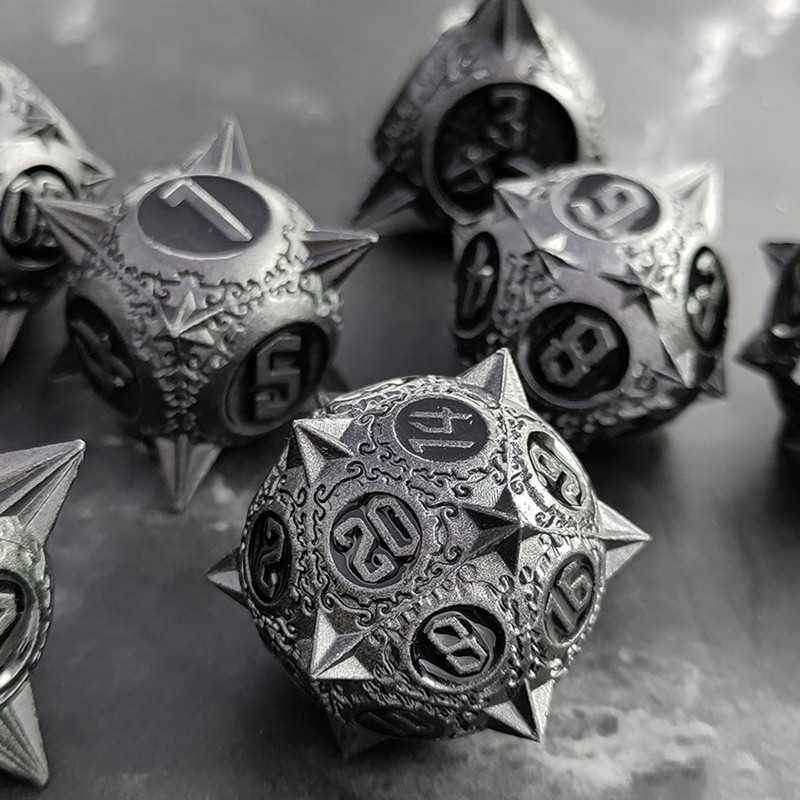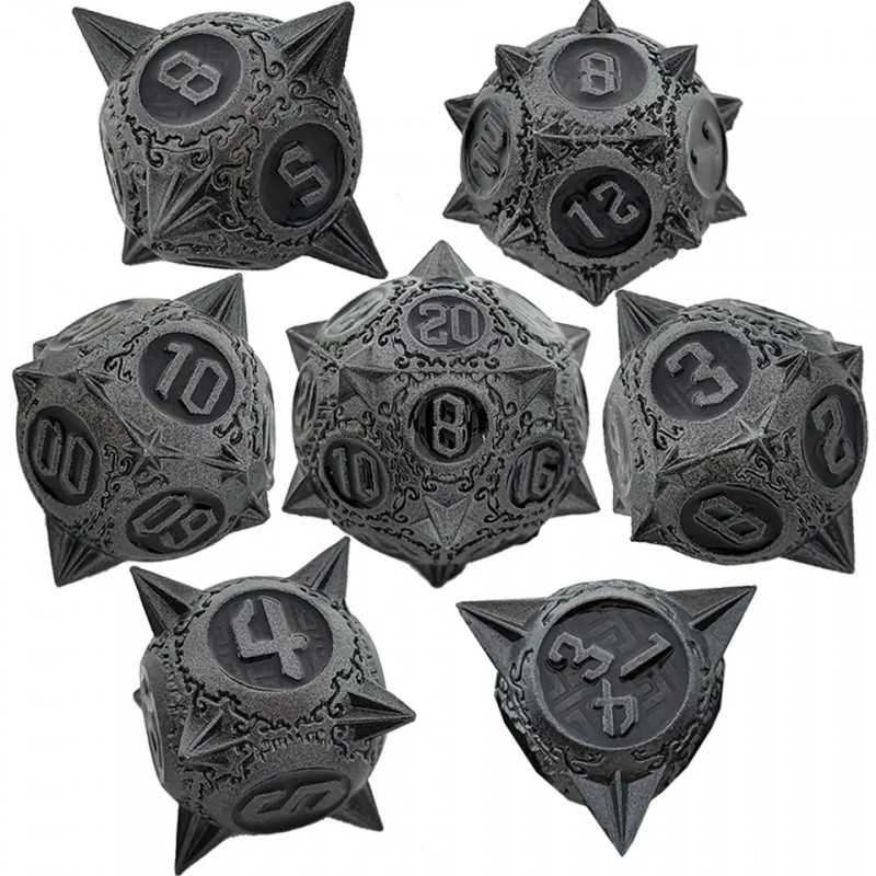 Zestaw siedmiu metalowych kości do gier fabularnych
