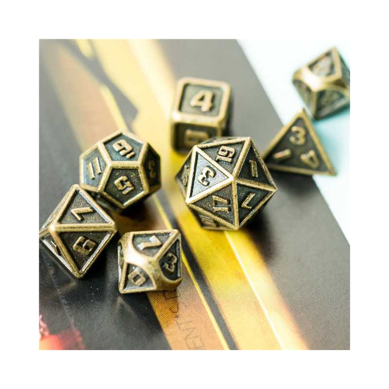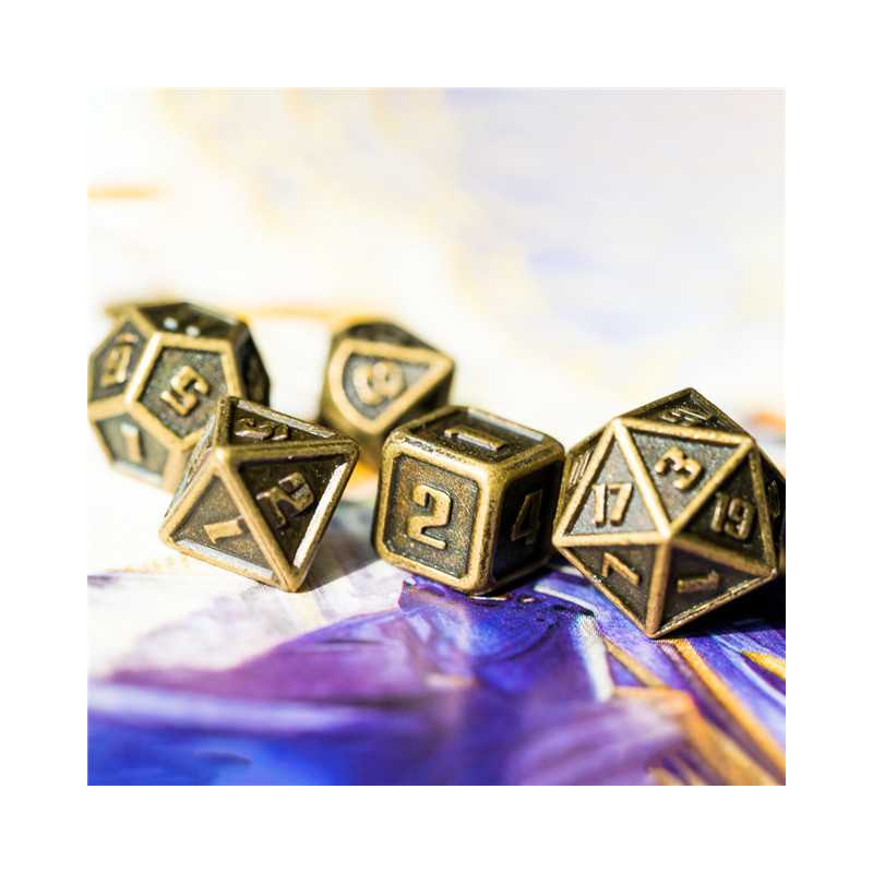 Zestaw siedmiu metalowych kości do gier fabularnych