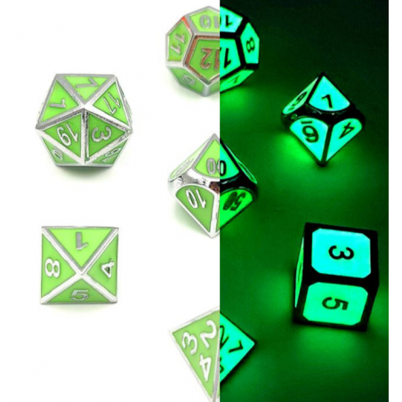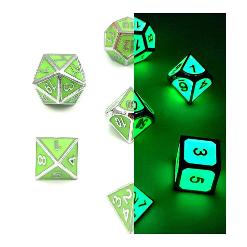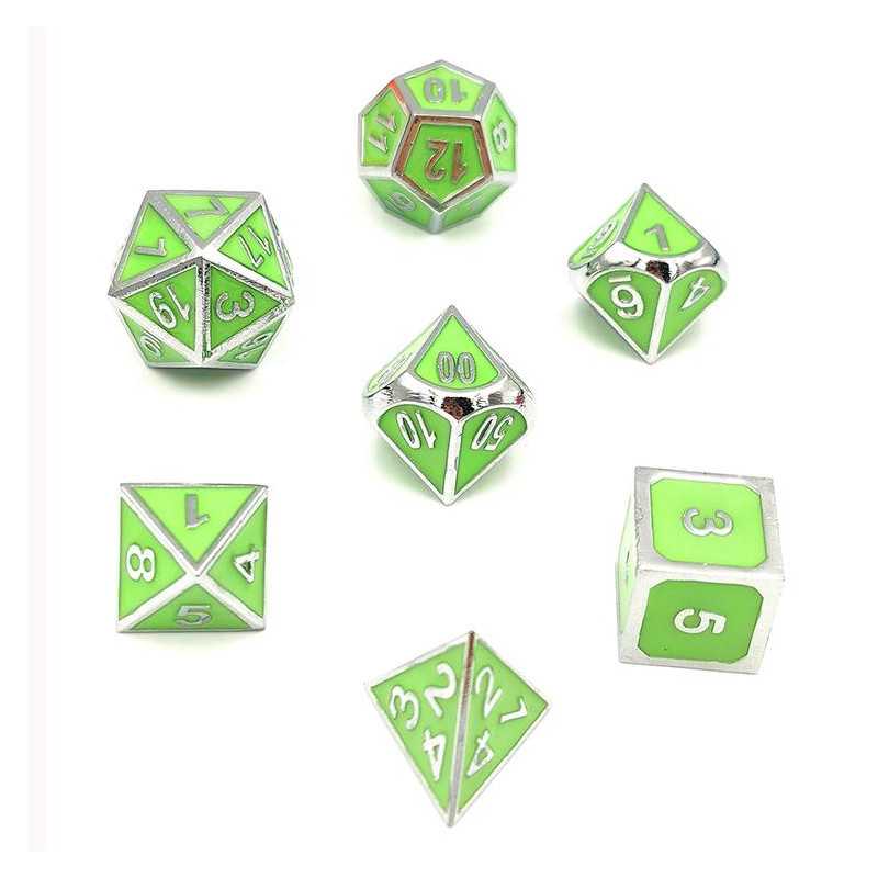 Zestaw siedmiu metalowych kości do gier fabularnych
