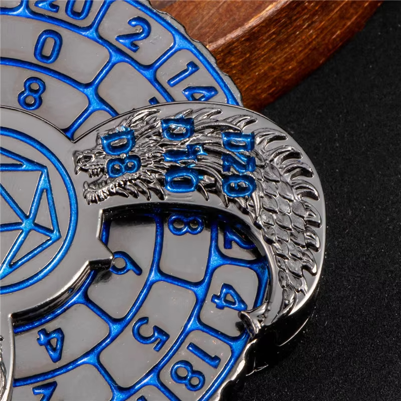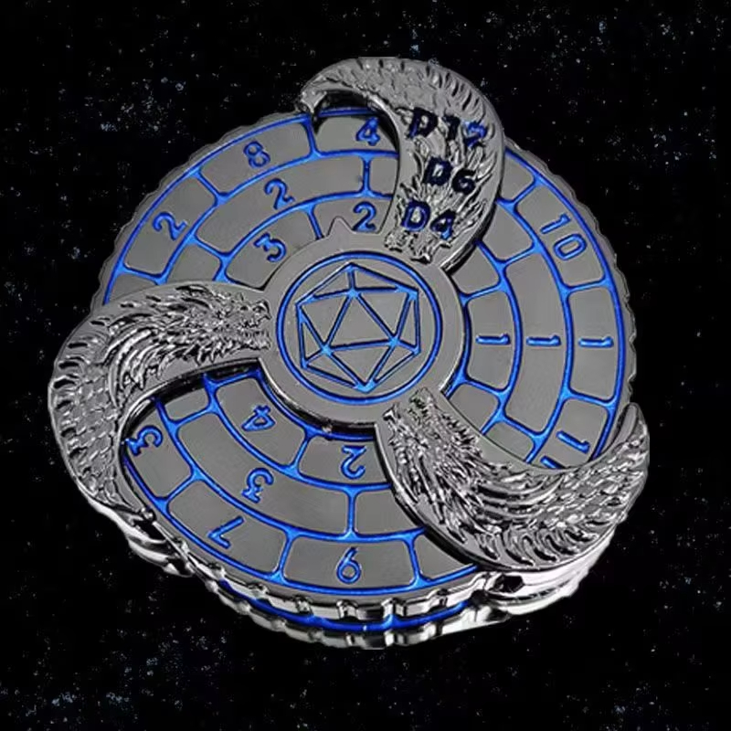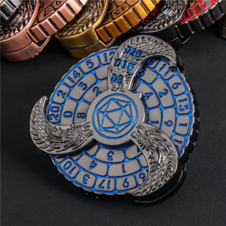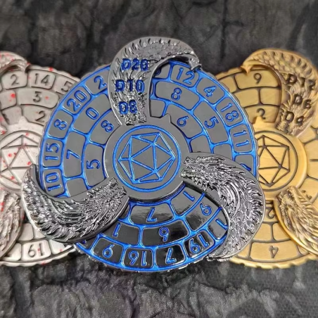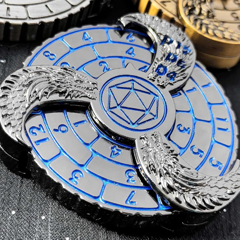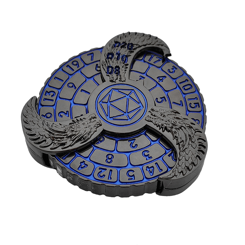 • Moc zestawu kości w mojej dłoni: Jedna strona spinnera posiada cyfry i wskaźniki dla kostek k4, k6 i k12, podczas gdy druga strona obsługuje kostki k8, k10 i k20. Dzięki temu masz wszystko, czego potrzebujesz, w jednym poręcznym narzędziu.